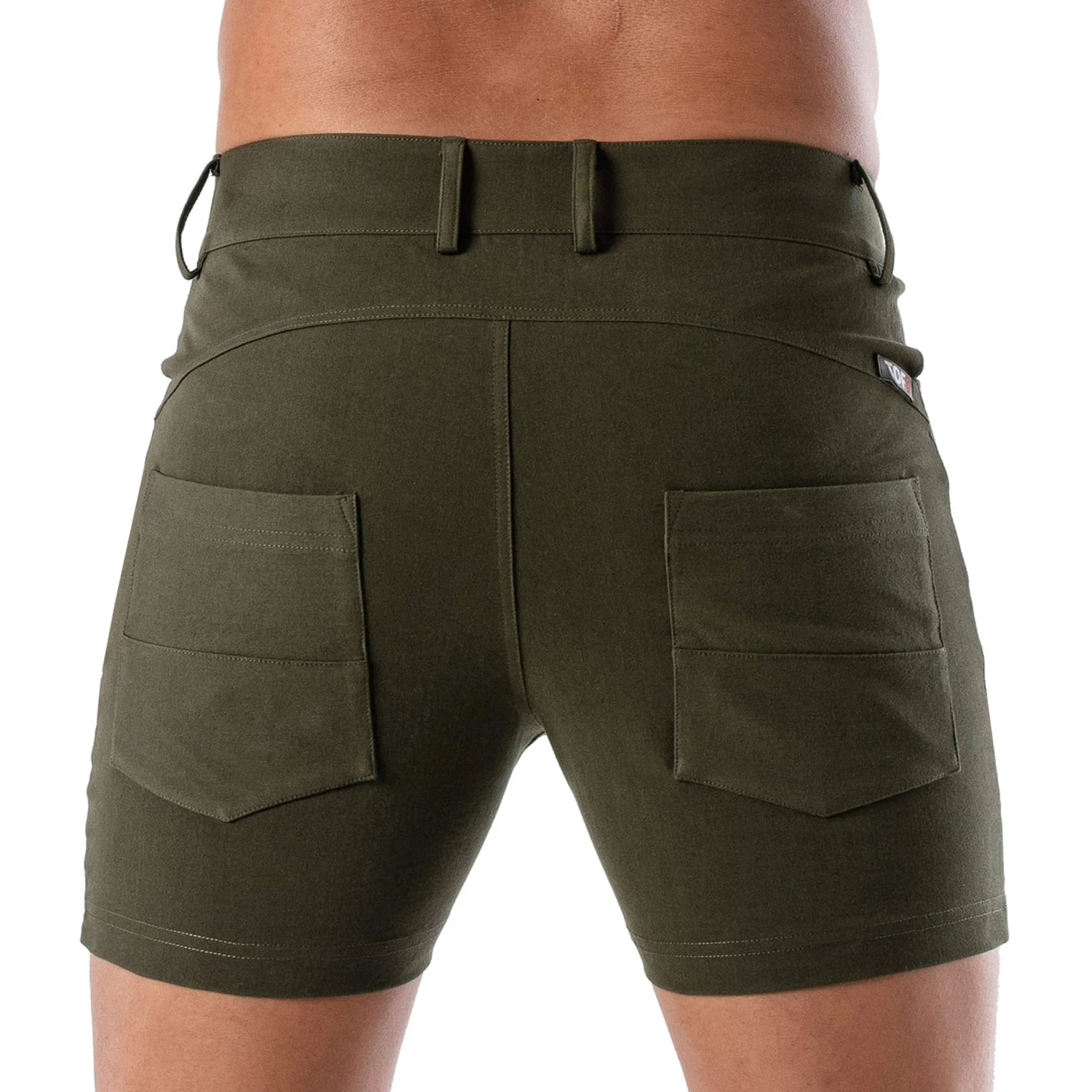 Bermuda mi-cuisse trÚs ajusté en coton stretch. 5 poches. Passants de ceinture. Braguette à fermeture Eclair et 1 bouton. Bande tricolore sur le cÎté droit. Fabrication française.