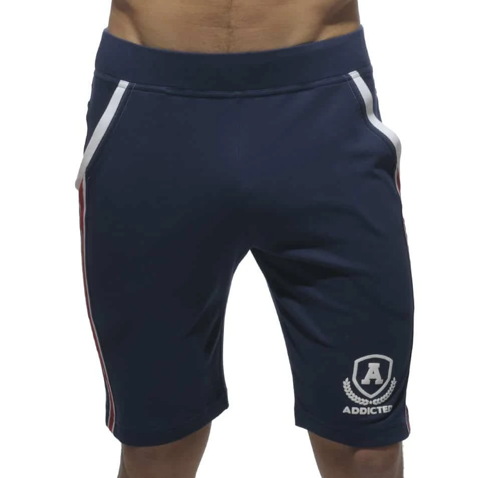Short de sport trÚs ajusté en pur coton. Bandes de couleurs contrastées le long de la cuisse. 2 poches devant, 1 poche derriÚre. Ecusson Addicted sur la cuisse gauche.