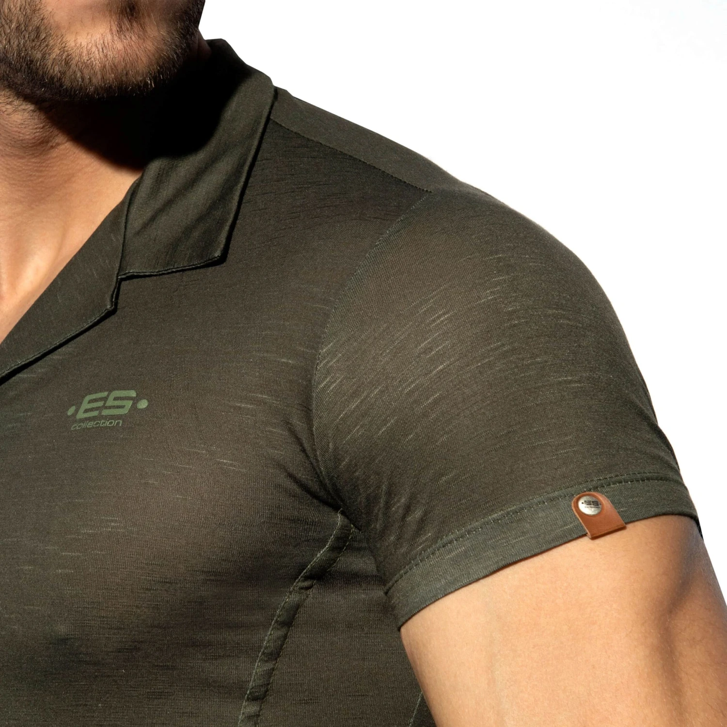 Chemisette en microfibre fine, légÚre et respirante de couleur unie. Coupe cintrée trÚs ajustée. Fermeture 5 boutons. Epingle métallique sur la manche gauche. Logo ES Collection sur la poitrine.
