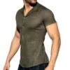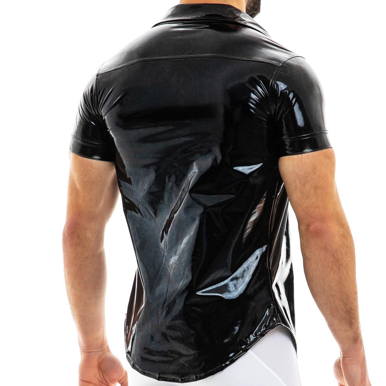Chemisette cintrée trÚs sexy en vinyle brillant pour un look fetish. Coupe arrondie pour un tombé parfait sur un jean ou un short. Fermeture 6 boutons. 2 poches à rabat sur la poitrine. Logo MV en relief sur la manche gauche.