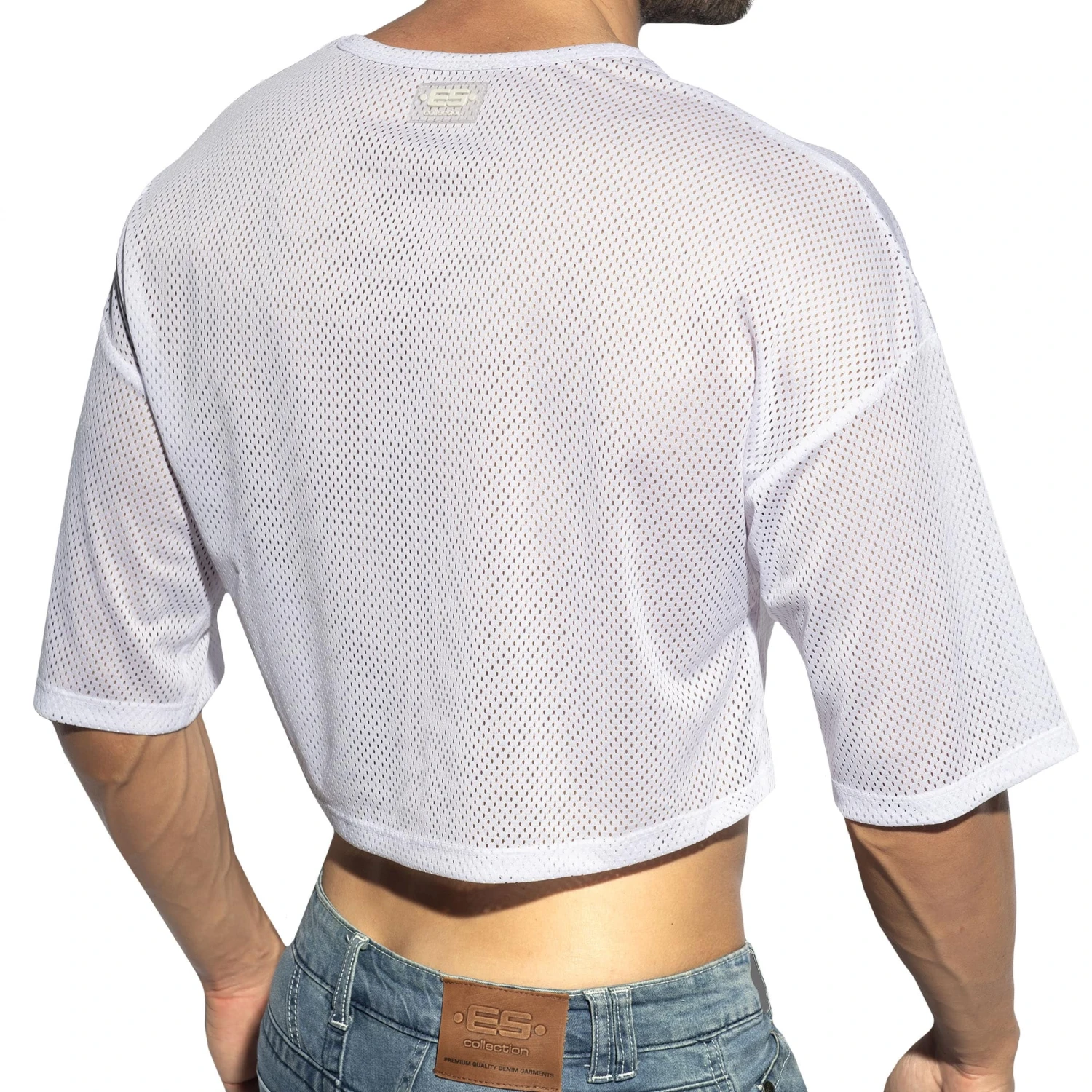 Crop top cool et repirant en résille à maille large. Coupe oversize pour plus de confort et de liverté de mouvement. Manches courtes col rond. Logo ES Collection en silicone en haut du dos.