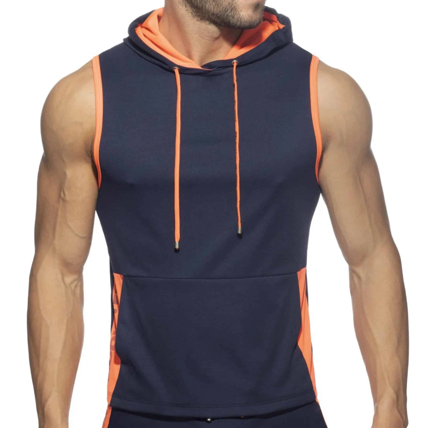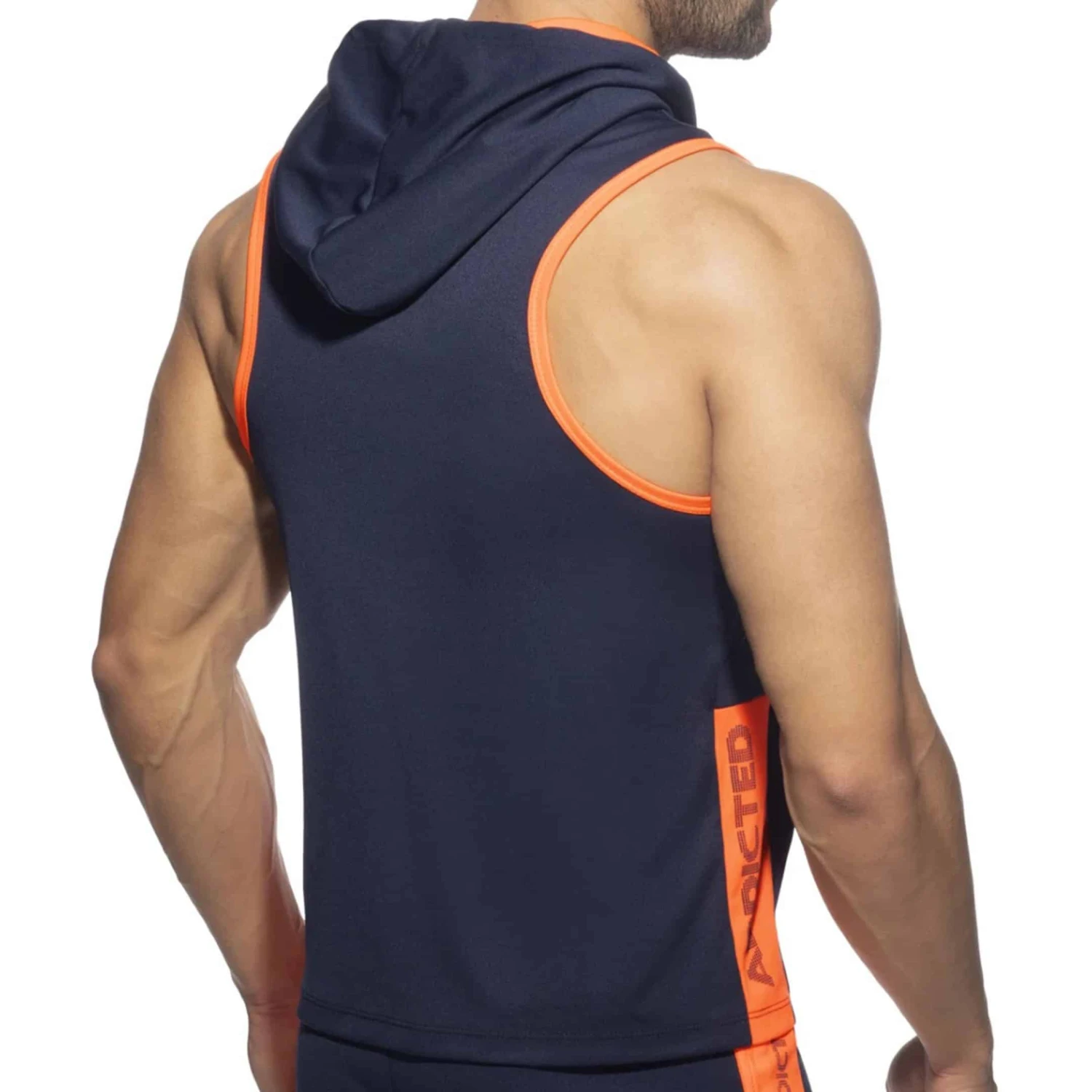 Débardeur sport et sexy en microfibre légère et respirante. Capuche avec cordon de serrage. Coupe ajustée pour mettre en valeur votre musculature. Grande double poche avec bande contrastée signée Addicted sur le côté droit.