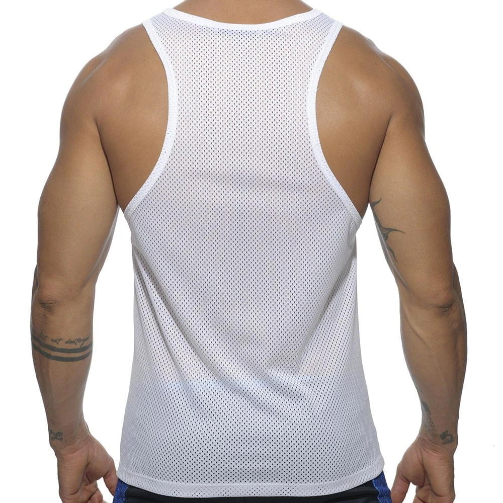 Débardeur en mesh léger et respirant, idéal pour le sport. Col rond. Logo Addicted imprimé sur la poitrine. Larges ouvertures sur les cÎtés.