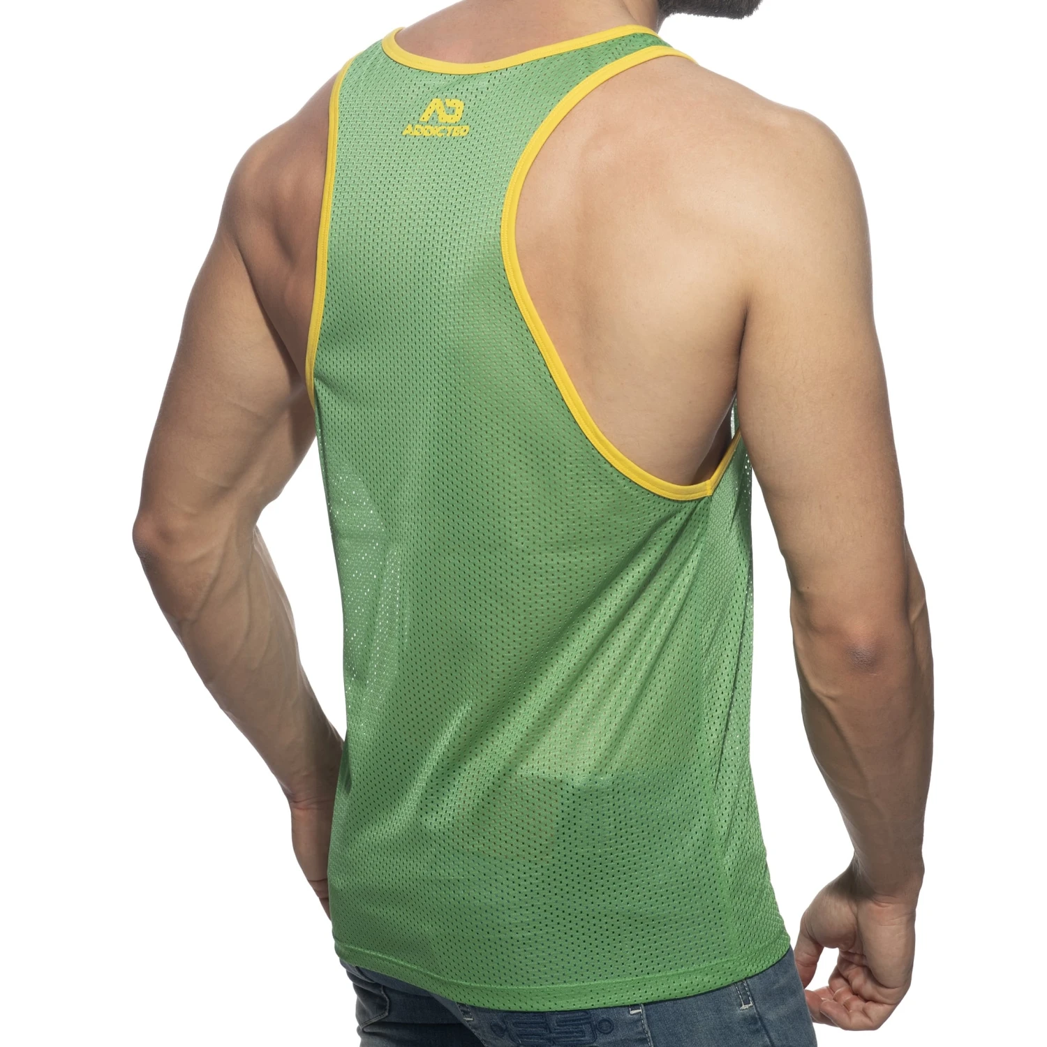 Débardeur léger et respirant en résille perforée. Bordures contrastées. Dos nageur. Logo Addicted imprimé sur la poitrine et le haut du dos.