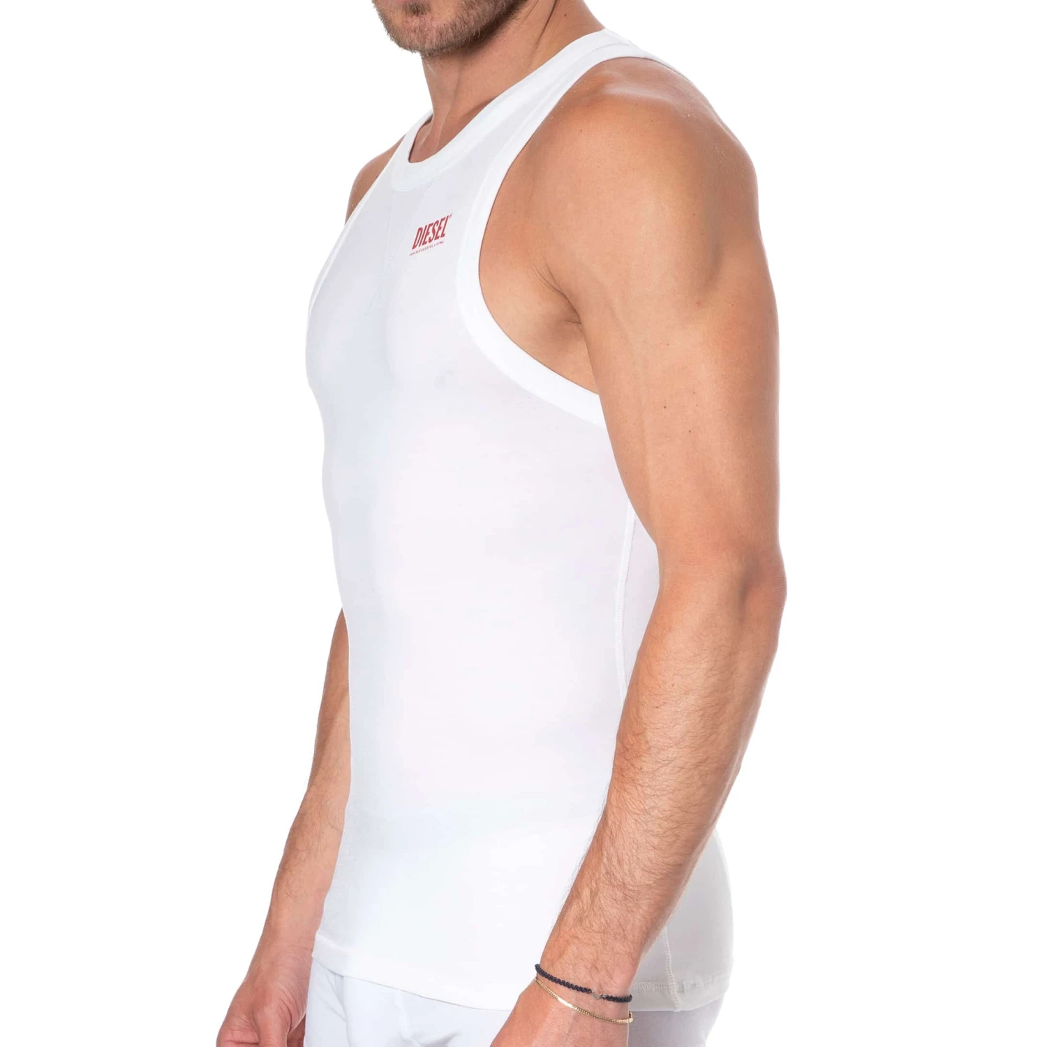 Débardeur trÚs confortable en coton stretch Supima trÚs doux. Surpiqûres en V sur le col. Coupe ajustée. Logo Diesel imprimé sur la poitrine.