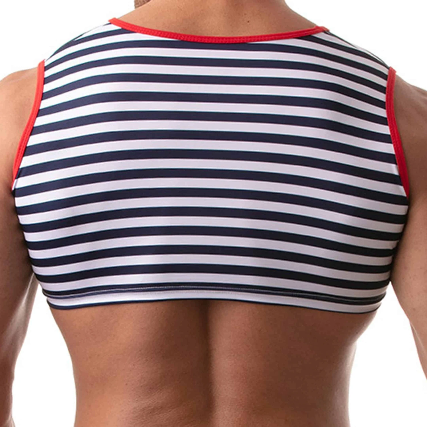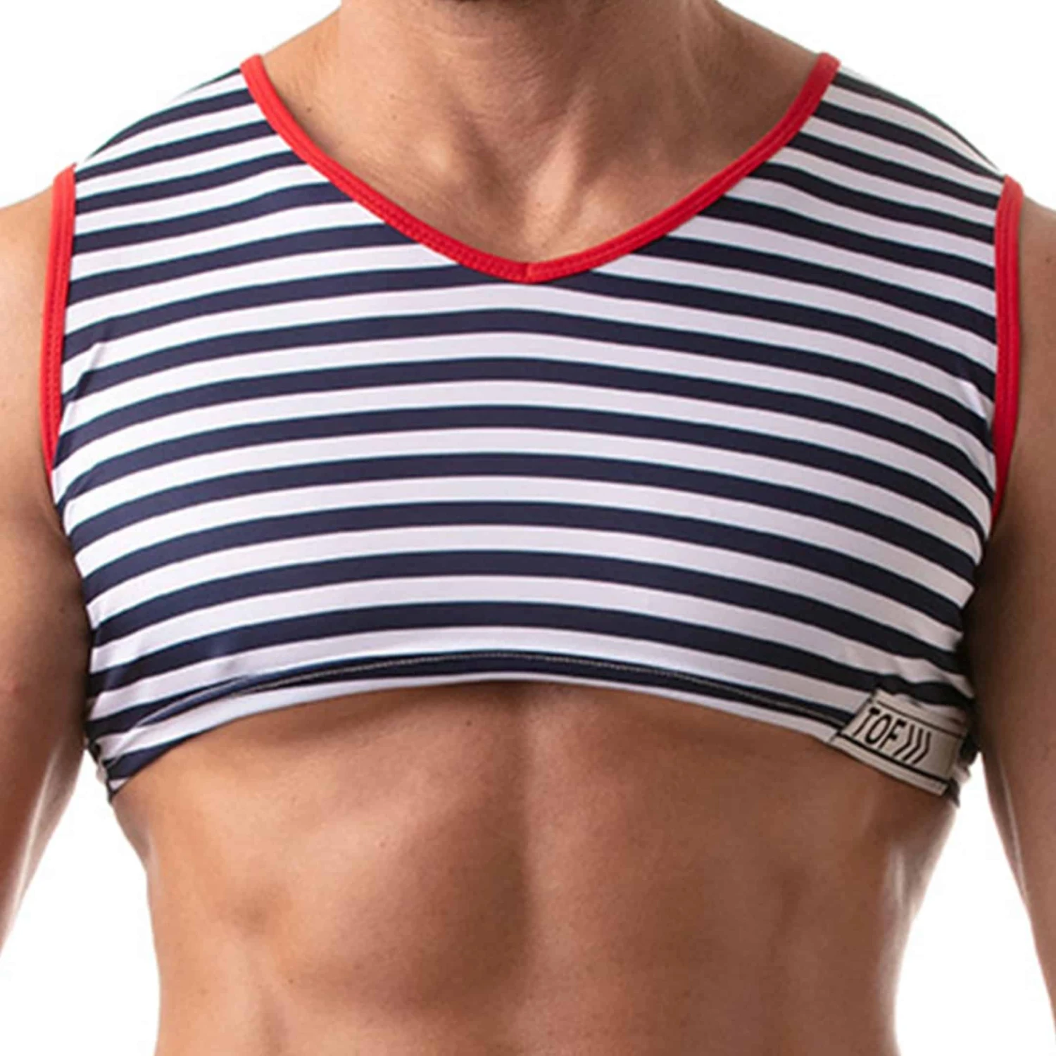 Débardeur sexy en microfibre douce et confortable. Coupe très ajustée et raccourcie pour dévoiler vos abdos. Bordures de couleur contrastée. Col en V profond. Bande élastique TOF Paris cousue sur le côté gauche.