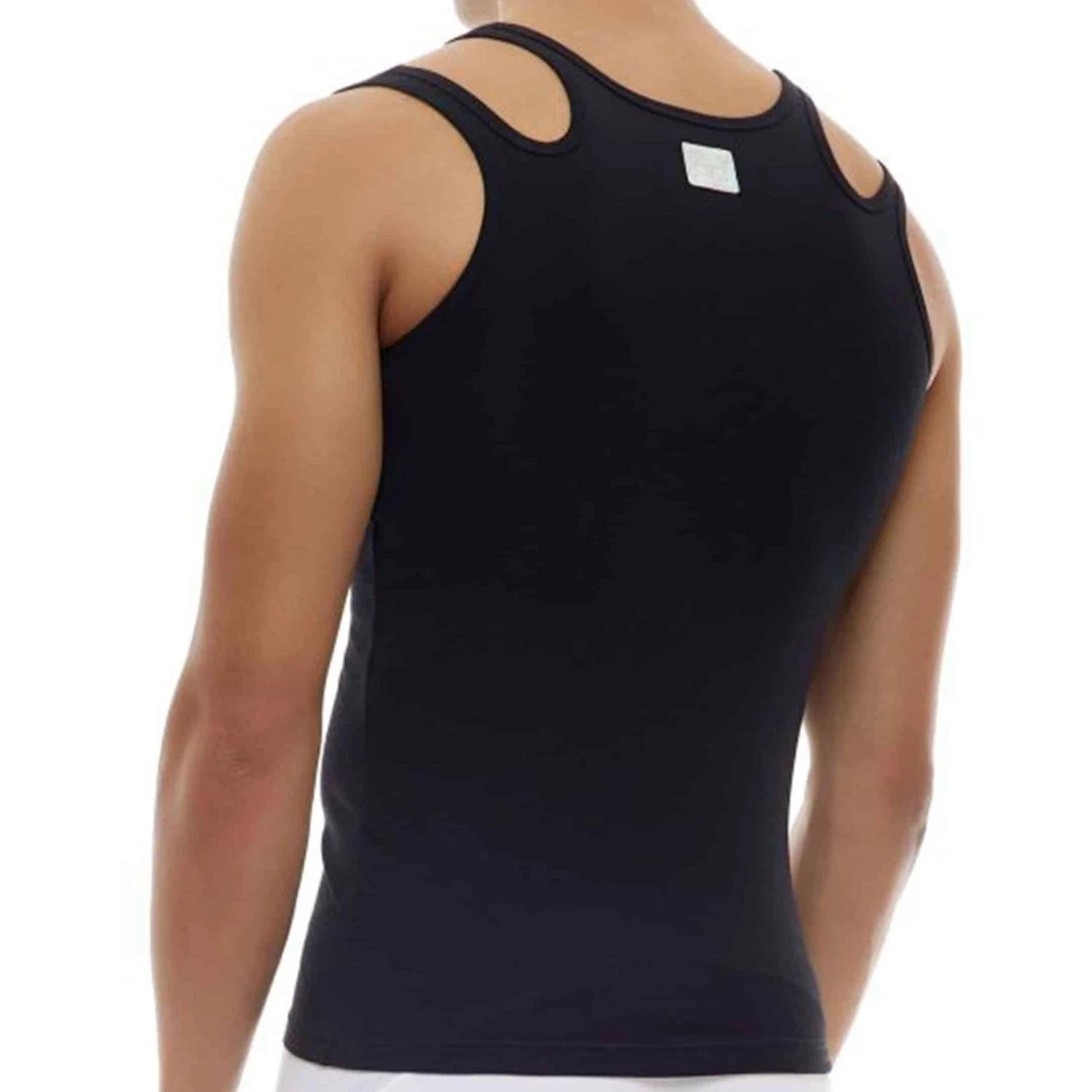 Débardeur monochromatique, doux et confortable en coton extensible écologique certifié GOTS. Coupe ajustée avec doubles bretelles. Réédition du modÚle original Modus Vivendi de 1994. Logo holographique cousu en haut du dos.