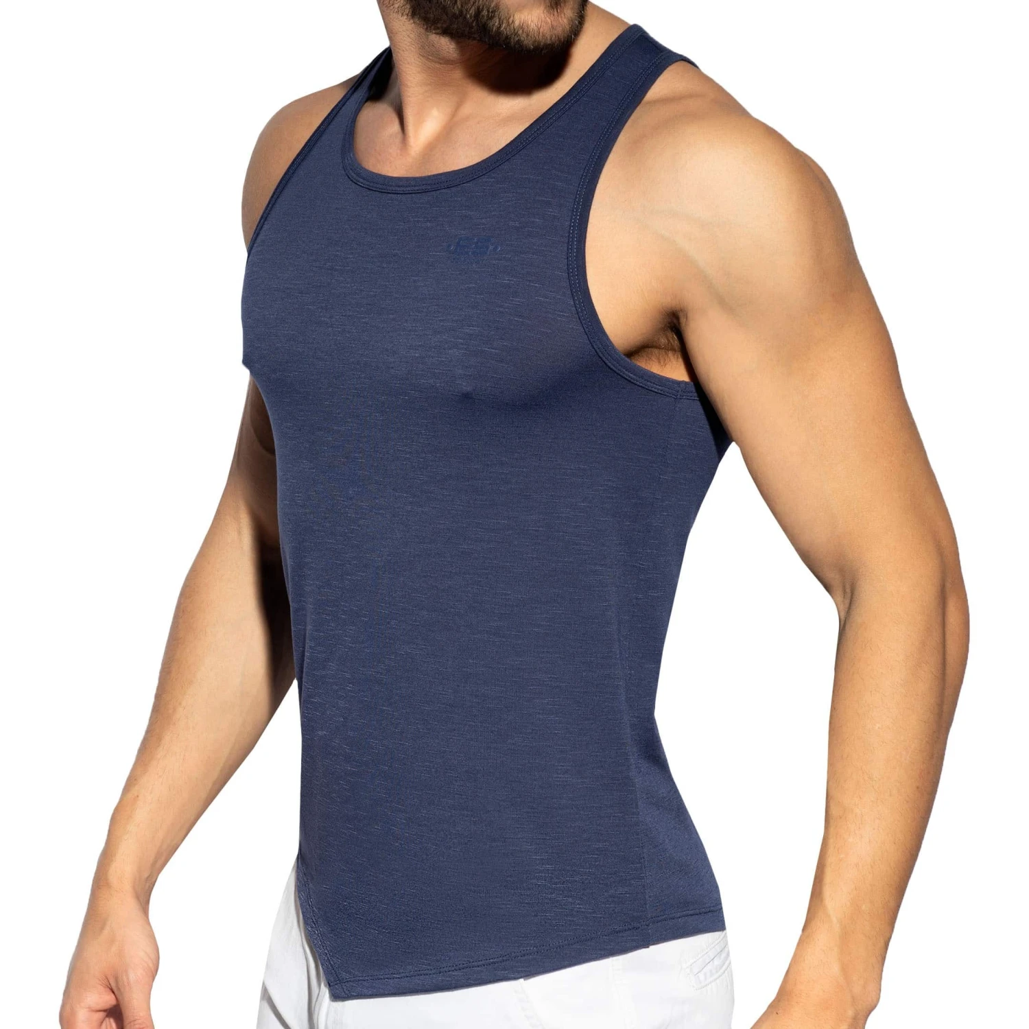 Débardeur ajusté en microfibre fraßche et respirante de couleur unie. Coupe originale en V sur la partie inférieure. Logo ES Collection sur la poitrine.