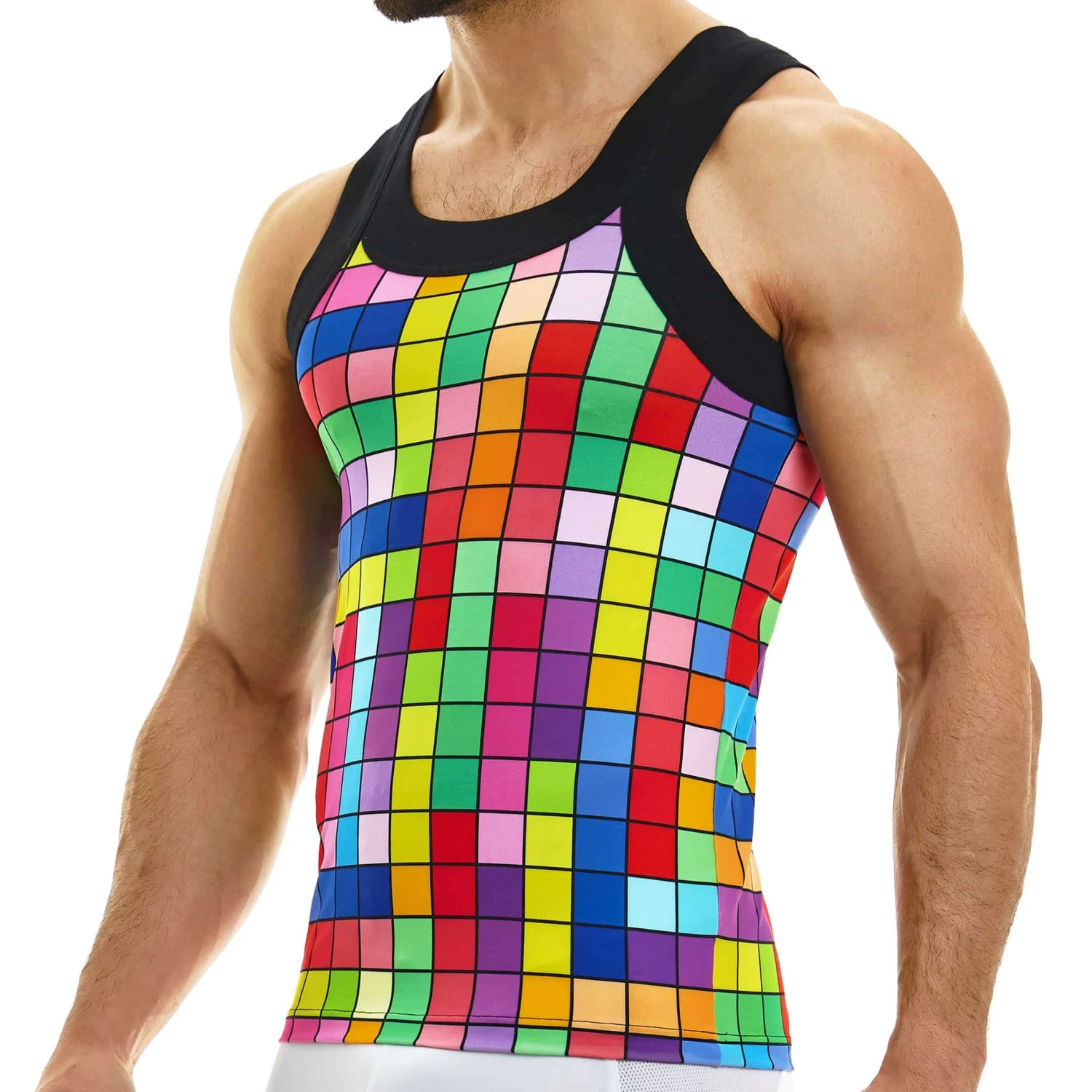 Débardeur ajusté en microfibre douce et extensible. Imprimé à carreaux trÚs coloré. Détails de couleur contrastée. Logo holographique cousu au dos.
