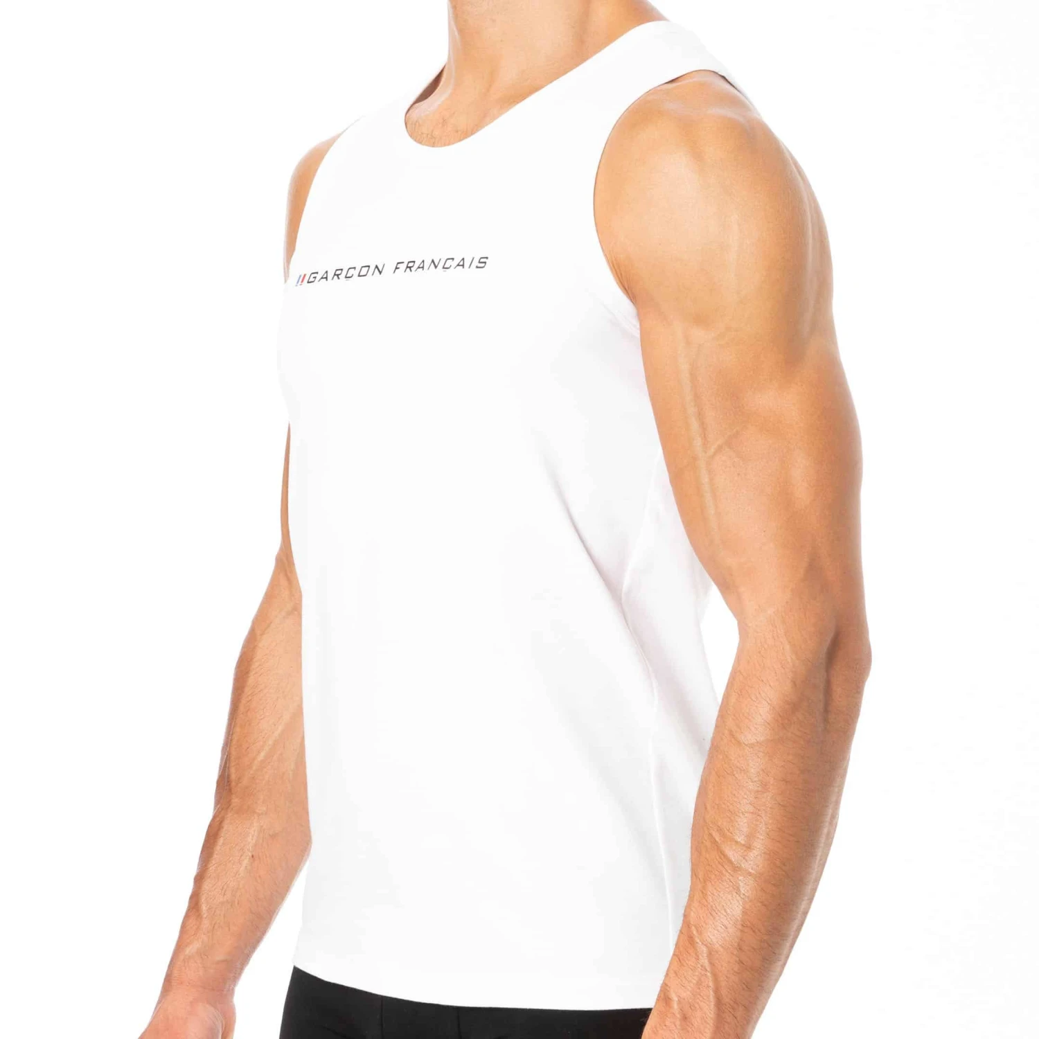 Débardeur ajusté trÚs confortable en coton biologique GOTS certifié Oeko-Tex. Coupe simple et élégante avec col rond. Logo Garçon Français imprimé sur la poitrine. Fabrication 100% française.