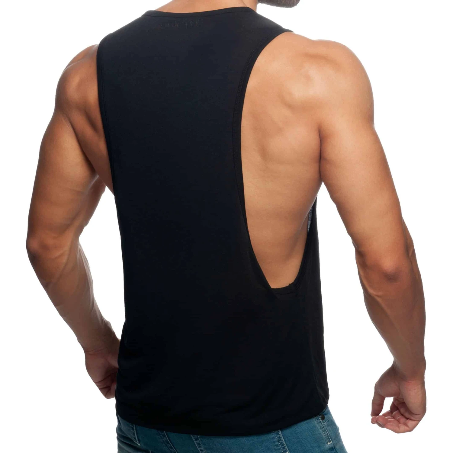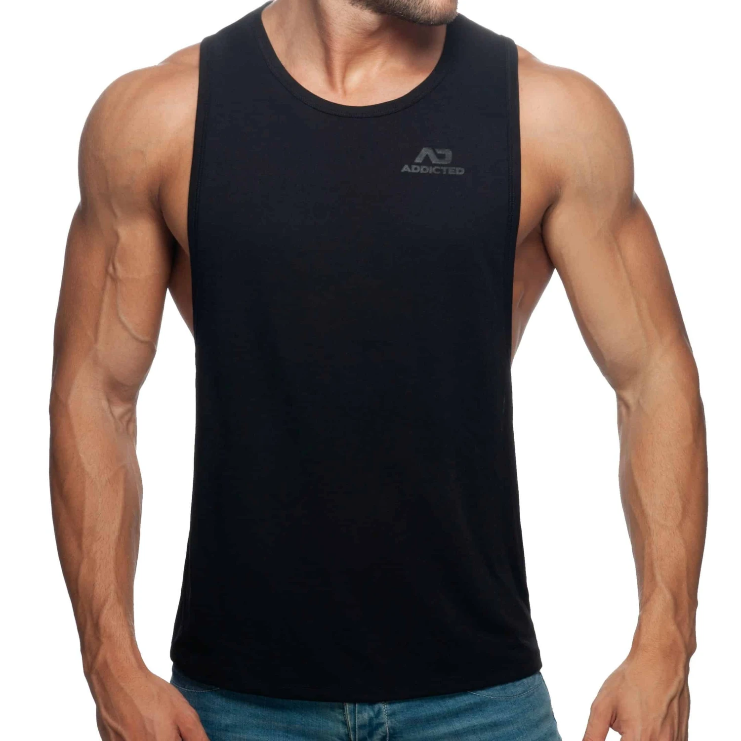 Débardeur en tissu trÚs fin et confortable, idéal pour le sport. Large ouvertures sous les bras. Imprimé Addicted ton sur ton sur la poitrine gauche et dans le dos.