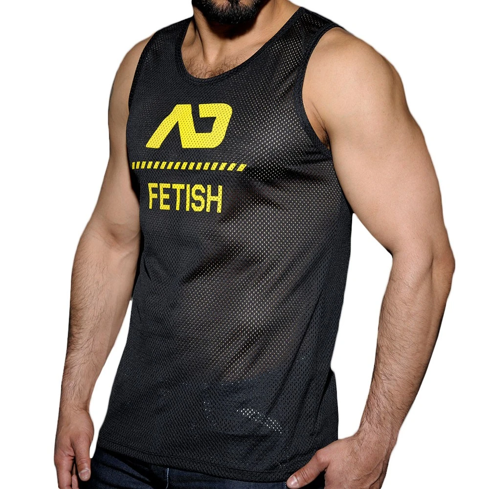 Débardeur trÚs sexy en mesh sport totalement transparent, léger et respirant. Logo AD Fetish imprimé sur la poitrine. Fabriqué à Barcelone.