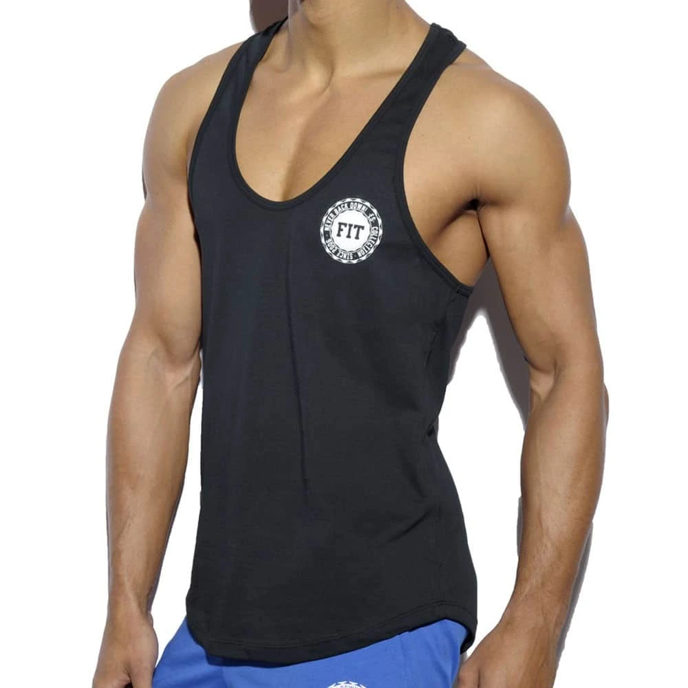 Débardeur en pur coton. Col en U profond et dos nageur. Ecusson Never Back Down (Ne renonce jamais) sur la poitrine.