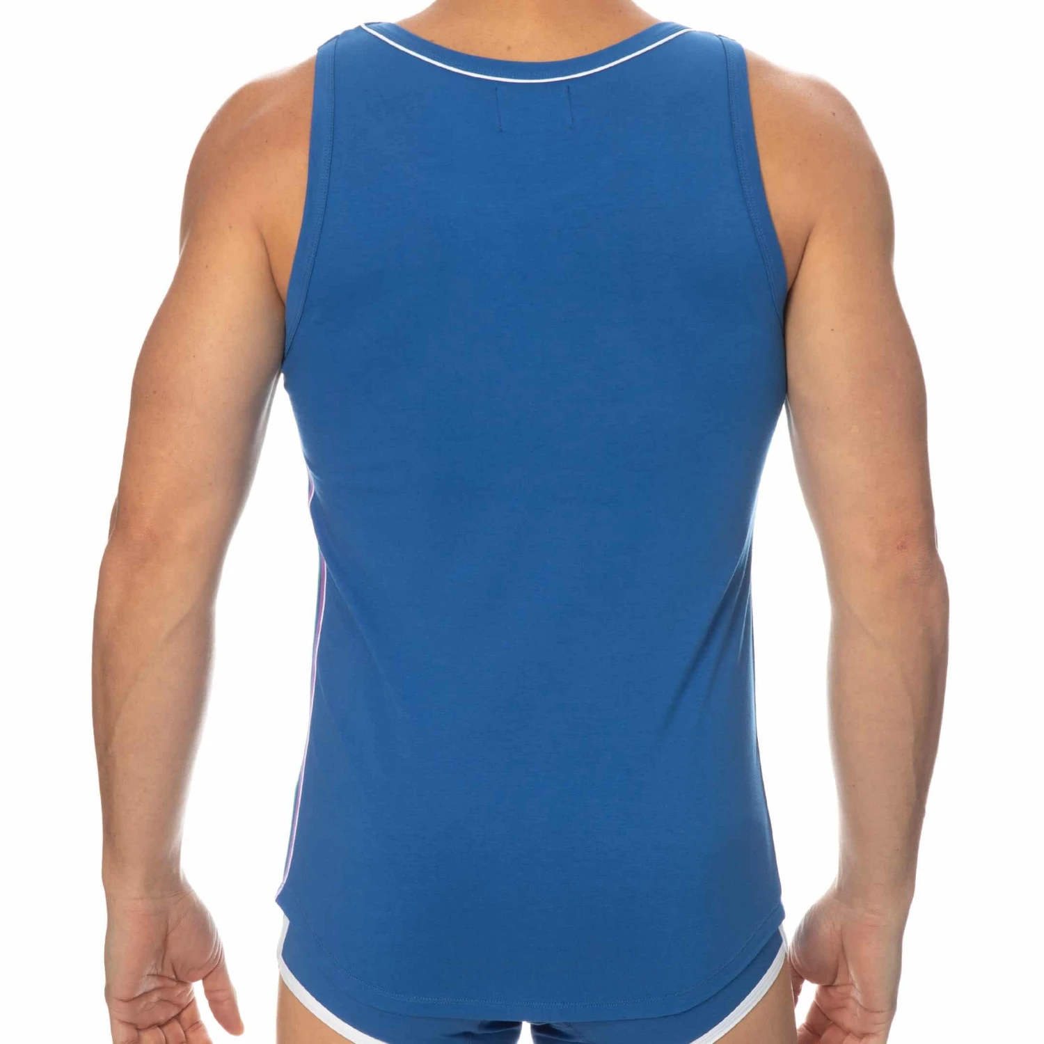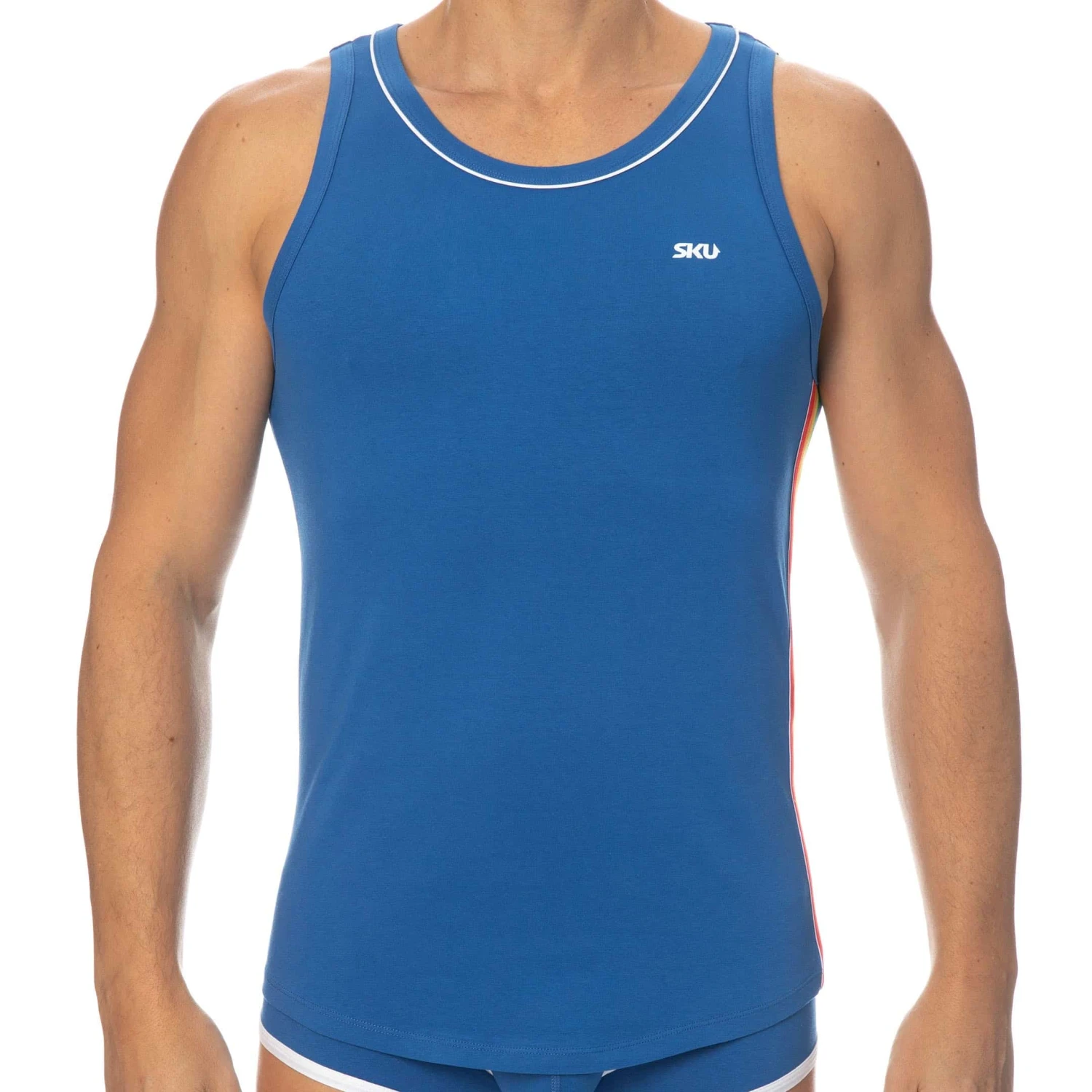 DĂ©bardeur sport et sexy en coton premium doux et extensible de couleur intense. CintrĂ© juste comme il faut, il valorisera votre musculature sans gĂŞner vos mouvements. Coupe courte et arrondie en bas, pour tomber parfaitement sur un pantalon. Bande Ă©lastique aux couleurs de l’arc-en-ciel sur le cĂ´tĂ© gauche. Le col rond est subtilement soulignĂ© par un liserĂ© de couleur contrastĂ©e. Logo SKU sur la poitrine.