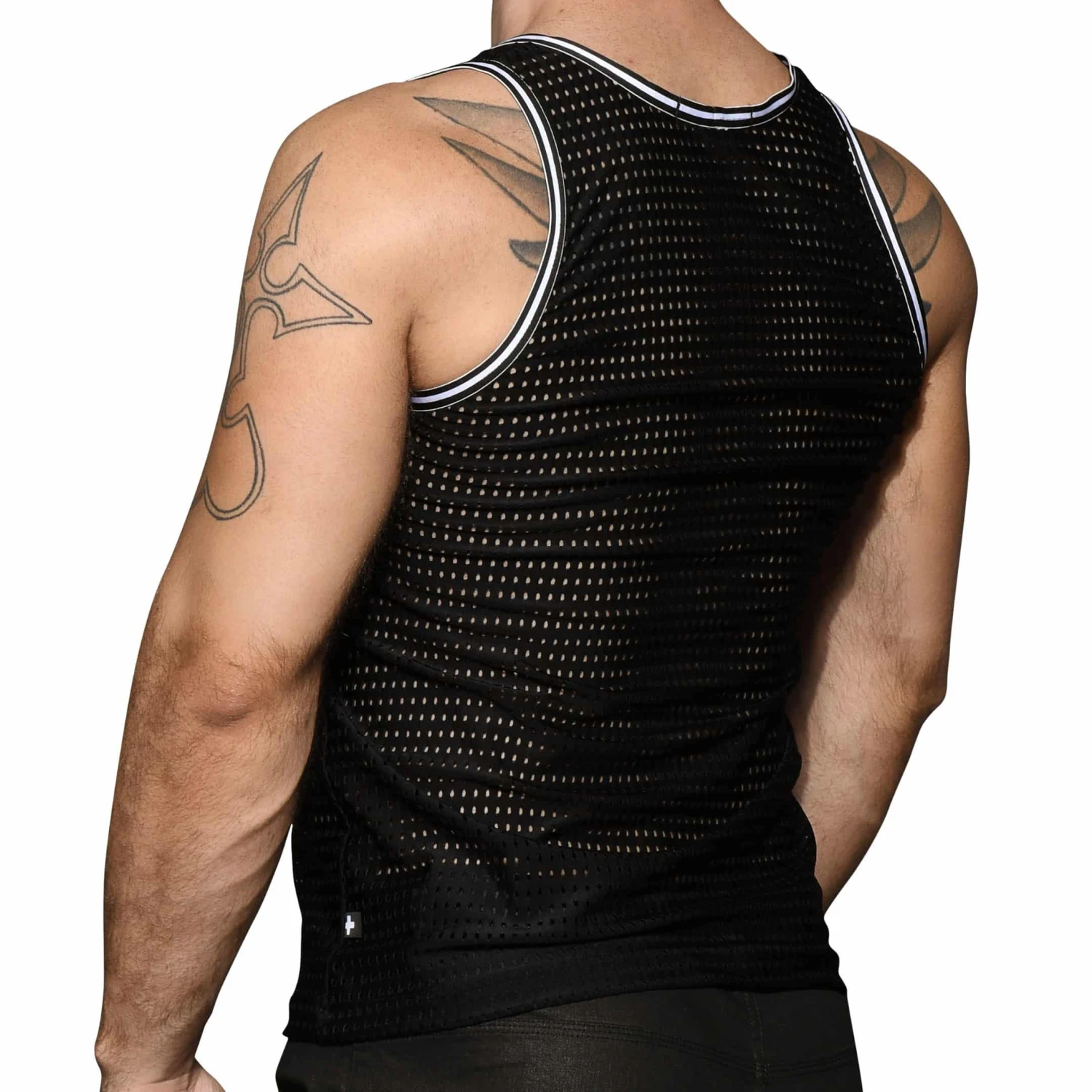 Débardeur sport en mesh extensible dans 4 directions. Tissu léger et respirant. Coupe amincissante pour mettre en valeur votre musculature. Bordures de couleur contrastée. Edition limitée.