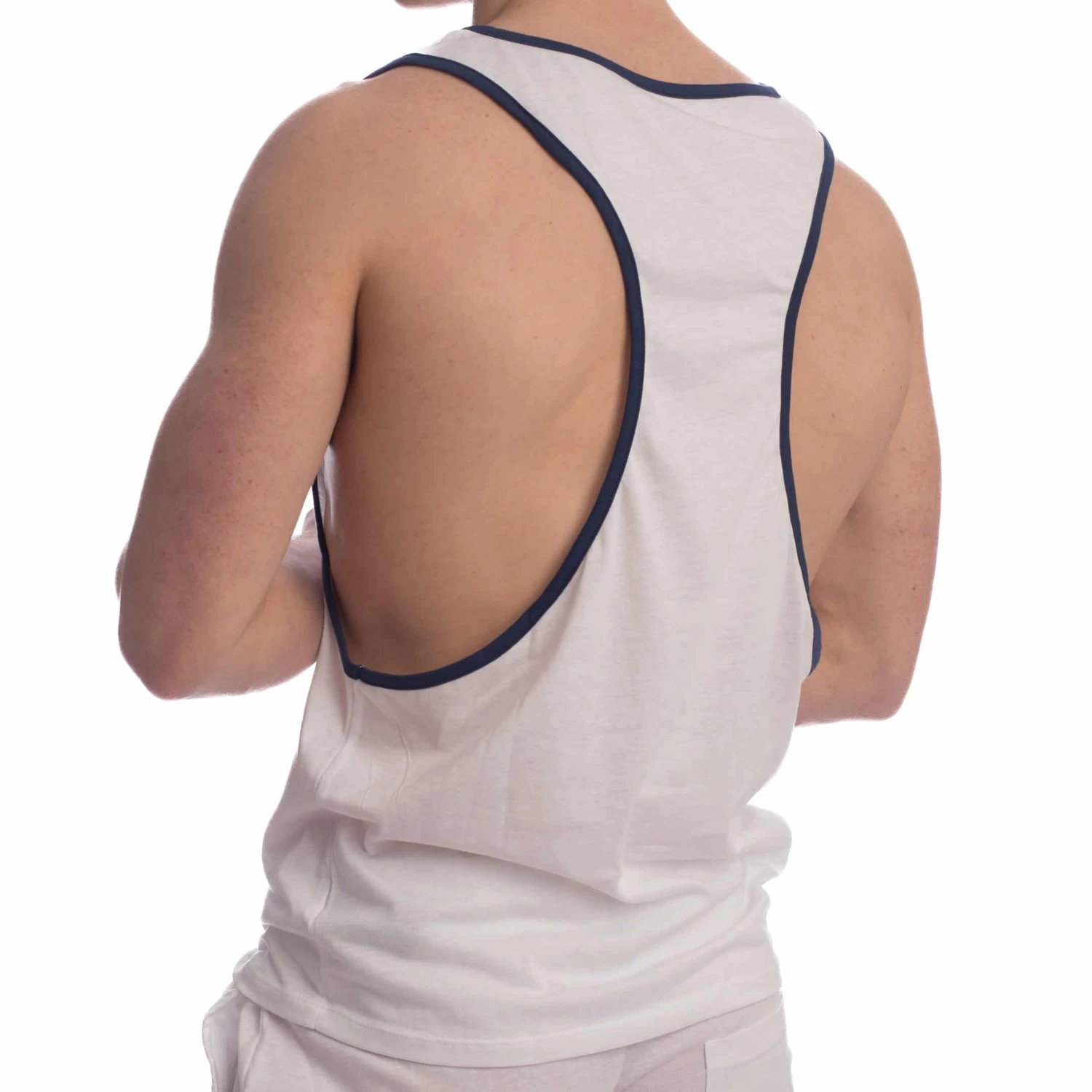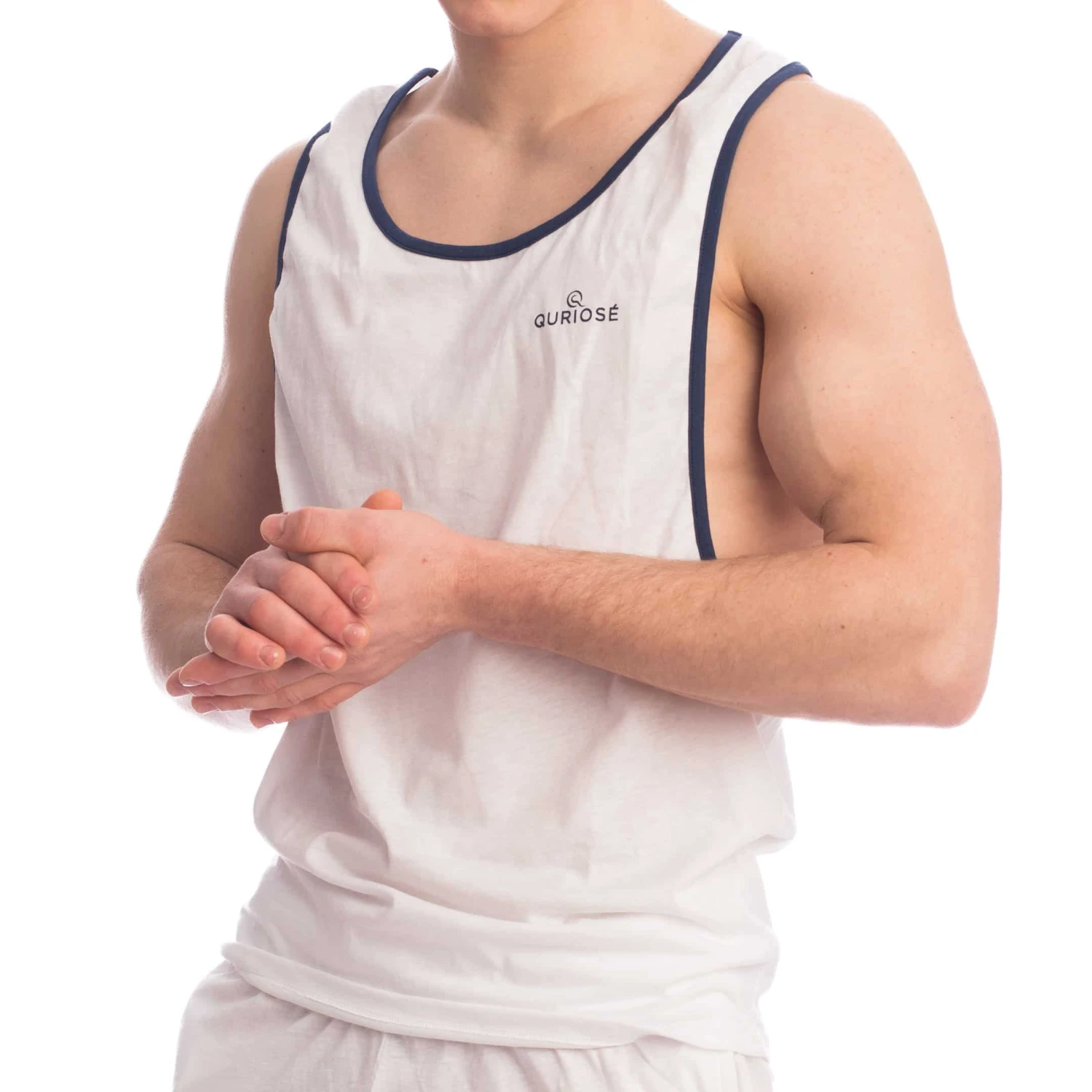 Débardeur sport en jersey 100% coton. Coupe ample avec dos nageur et larges ouvertures sous les bras pour faciliter les mouvements. Passepoil de couleur contrastée. Logo Quriosé sur la poitrine.