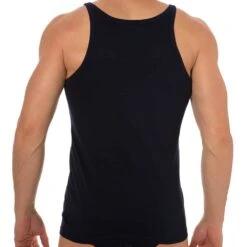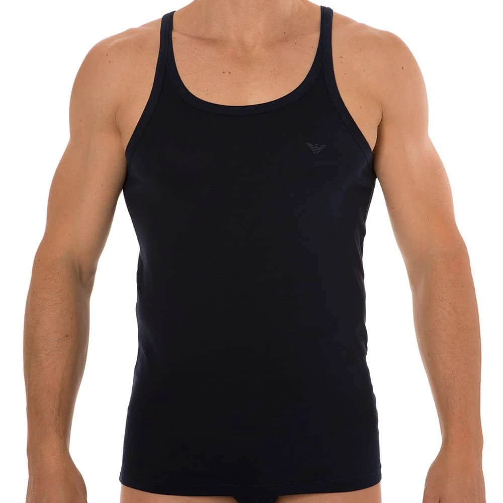 Lot de 2 débardeurs à col rond, en coton doux et confortable. Coupe élégante et ajustée. Logo Armani sur la poitrine.