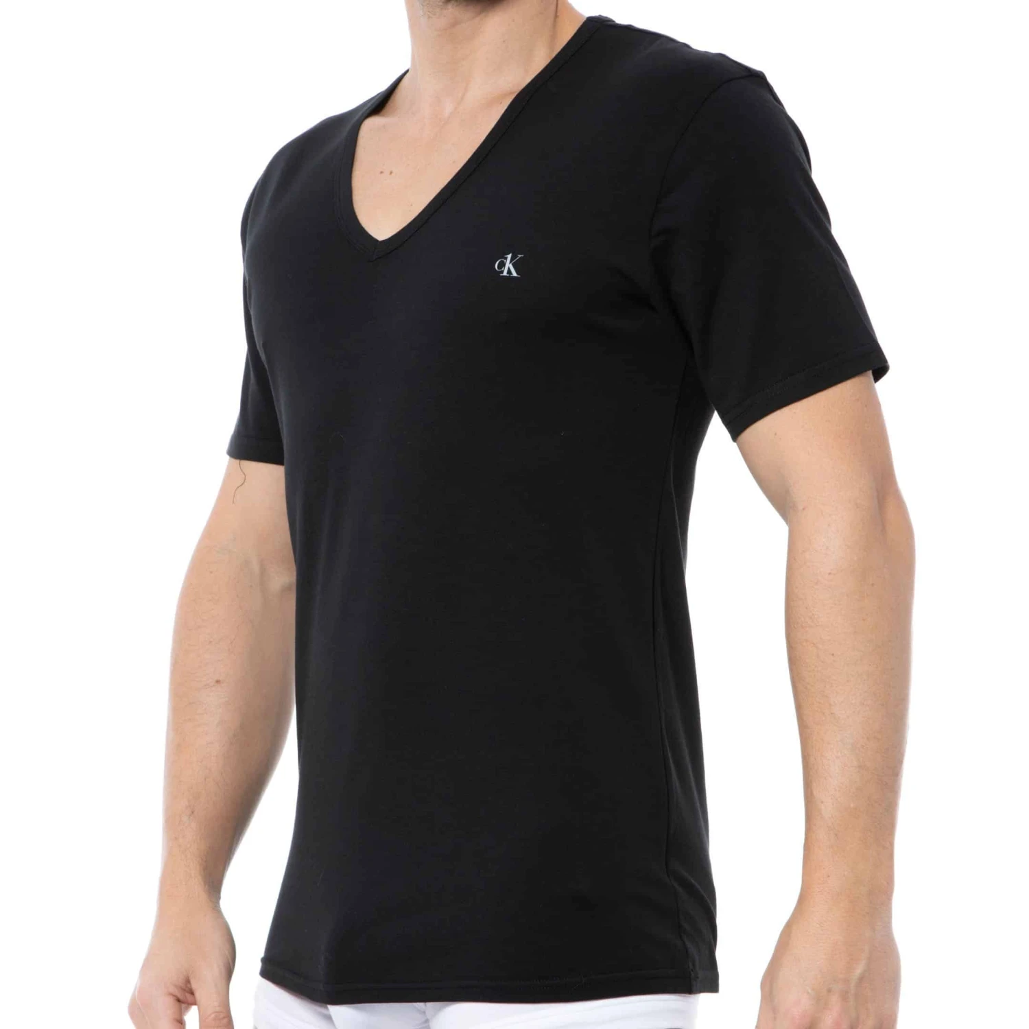 Lot de 2 t-shirts en coton stretch uni, doux et agréable à porter. Coupe simple et ajustée. Col en V et manches courtes. Logo CK imprimé sur la poitrine.