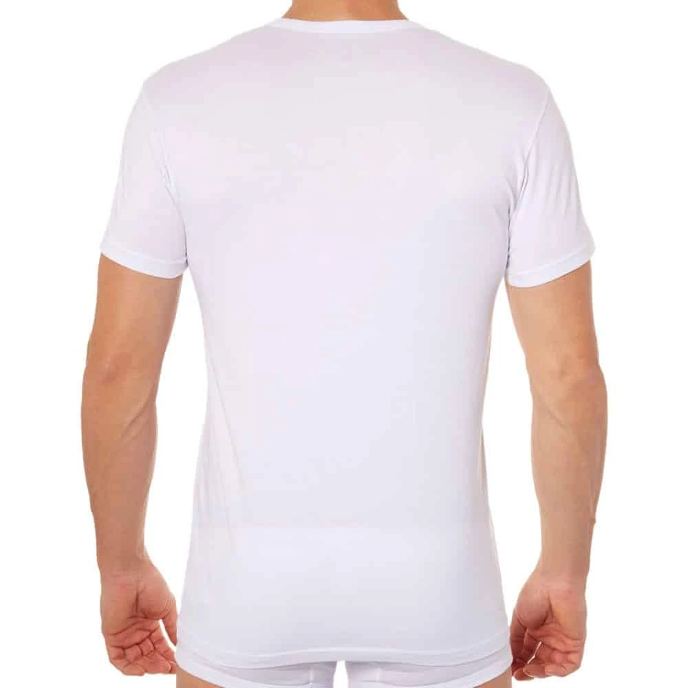 Lot de 2 t-shirts unis en coton stretch doux et confortable. Manches courtes et col rond. Logo Emporio Armani au milieu de la poitrine.