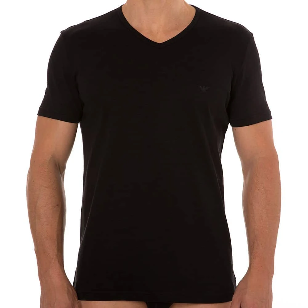 Lot de 2 t-shirts en coton doux et confortable. Coupe élégante et ajustée. Col V et manches courtes. Logo Armani sur la poitrine.