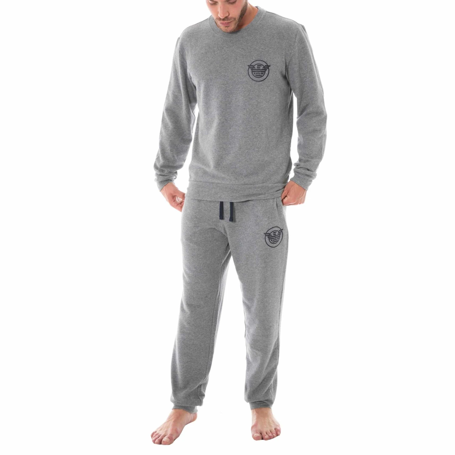 Pantalon en jersey bouclette super doux et confortable de couleur unie. Logo Emporio Armani sur la cuisse gauche. 2 poches. Ceinture élastique avec cordon de serrage. Bandes élastiquées aux chevilles. Veste vendue séparemment.