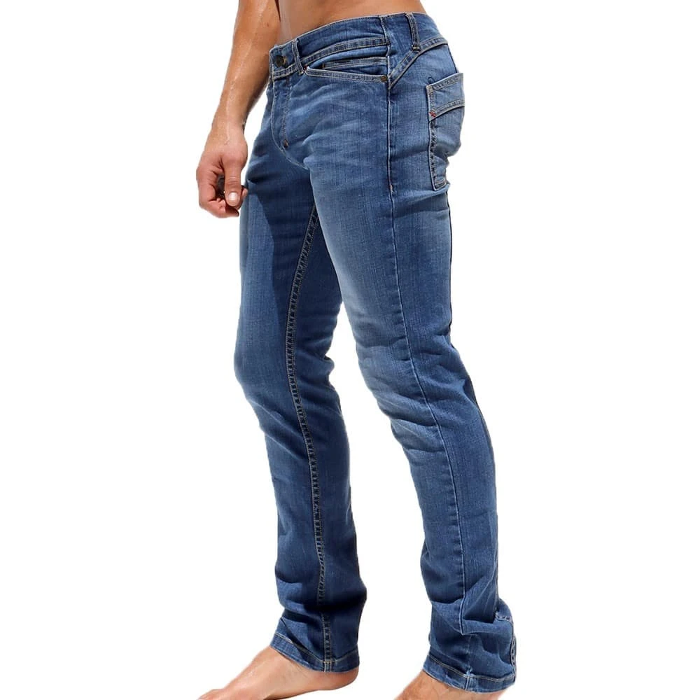 Jeans stretch taille basse en toile denim lĂ©gère prĂ©alavĂ©e pour un effet usĂ©. Coupe skinny très près du corps. Les lignes incurvĂ©es sur les poches arrières – caractĂ©ristiques de la marque – mettent en valeur votre fessier. Couture verticale derrière sur toute la hauteur de la jambe. Braguette Ă boutons. Rivets mĂ©talliques Rufskin. FabriquĂ© en Californie. Taille US.