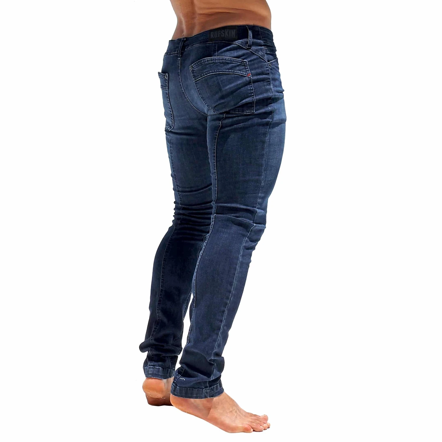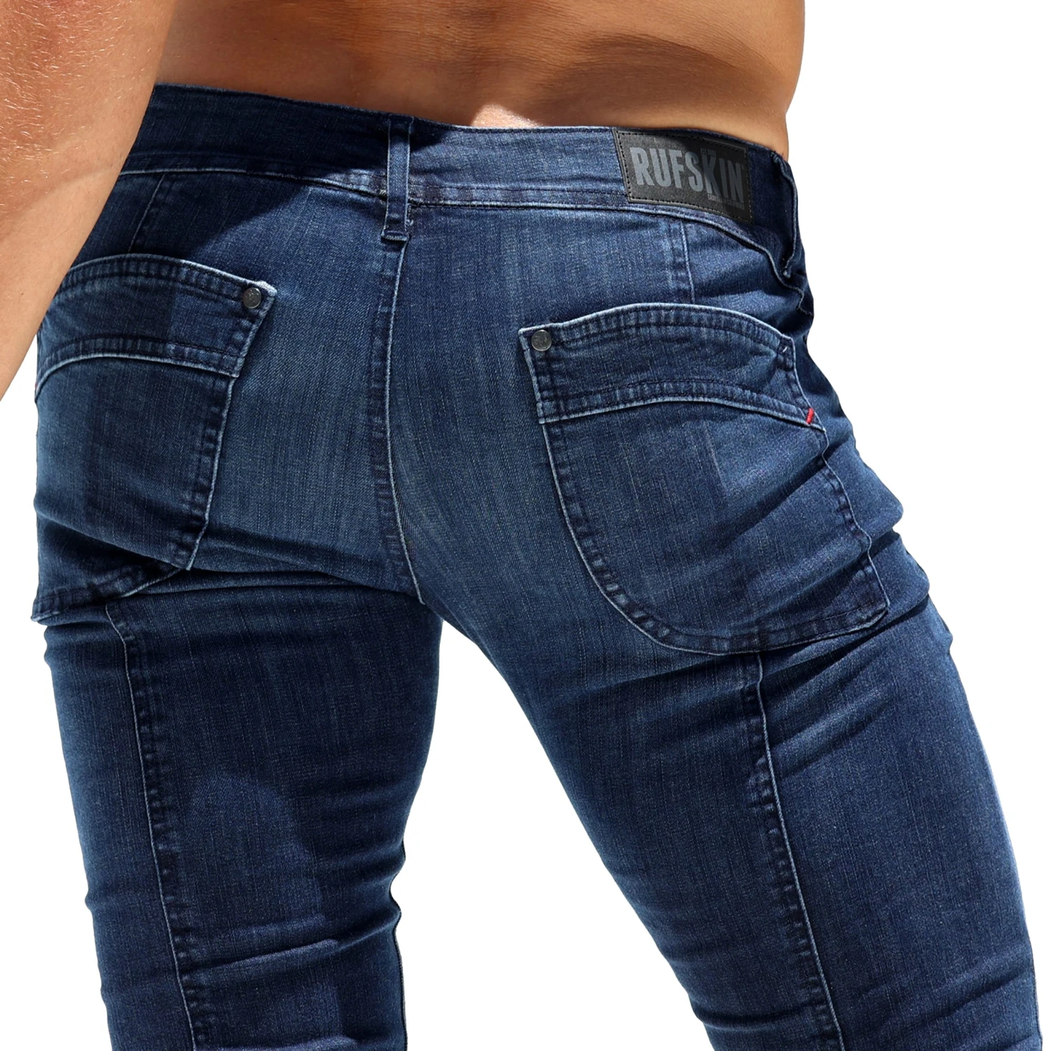 Jeans stretch taille basse en toile denim lĂ©gère. Coupe skinny très près du corps. Les lignes incurvĂ©es sur les poches arrières – caractĂ©ristiques de la marque – mettent en valeur votre fessier. Couture verticale derrière sur toute la hauteur de la jambe. Braguette Ă boutons. Rivets mĂ©talliques Rufskin. FabriquĂ© en Californie. Taille US.