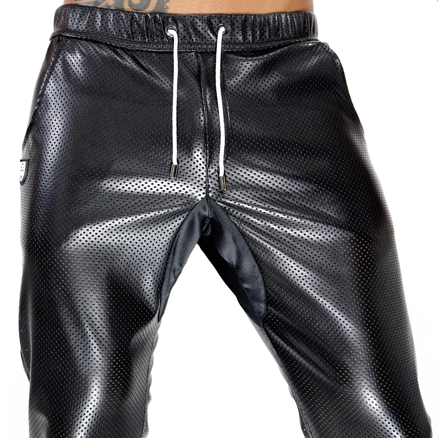 Pantalon taille basse en microfibre perforĂ©e imitant le cuir. Coupe ajustĂ©e avec renforcement Ă l’entrejambe. 4 poches dont 1 avec fermeture Eclair. DĂ©tails contrastĂ©s et rĂ©flĂ©chissants. Braguette factice. Ceinture Ă©lastique recouverte avec cordon de serrage. Ecusson TOF sur la cuisse droite. Fabrication française.