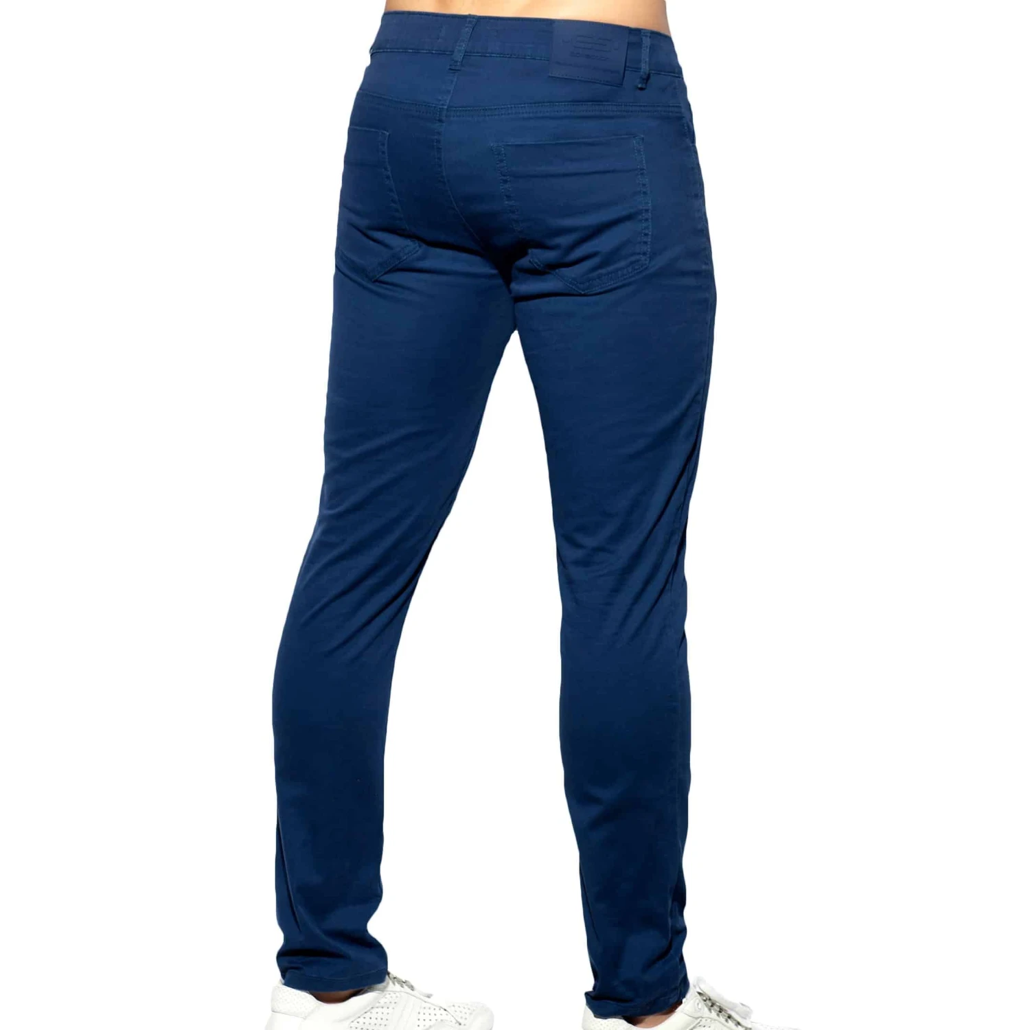 Pantalon en coton stretch. Coupe slim trĂšs ajustĂ©e et serrĂ©e au niveau des jambes. Braguette Ă fermeture Eclair et 1 bouton. 5 poches. Passants de ceinture. Etiquette ES Collection en silicone Ă l’arriĂšre.
