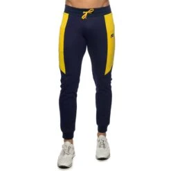 Pantalon de sport en coton trÚs doux, léger et confortable, idéal pour le sport. EmpiÚcement en mesh de couleur contrastée avec petite poche sur chaque cuisse. Logo AD sur la jambe gauche. Bandes élastiquées aux chevilles. Ceinture élastique avec cordon de serrage.