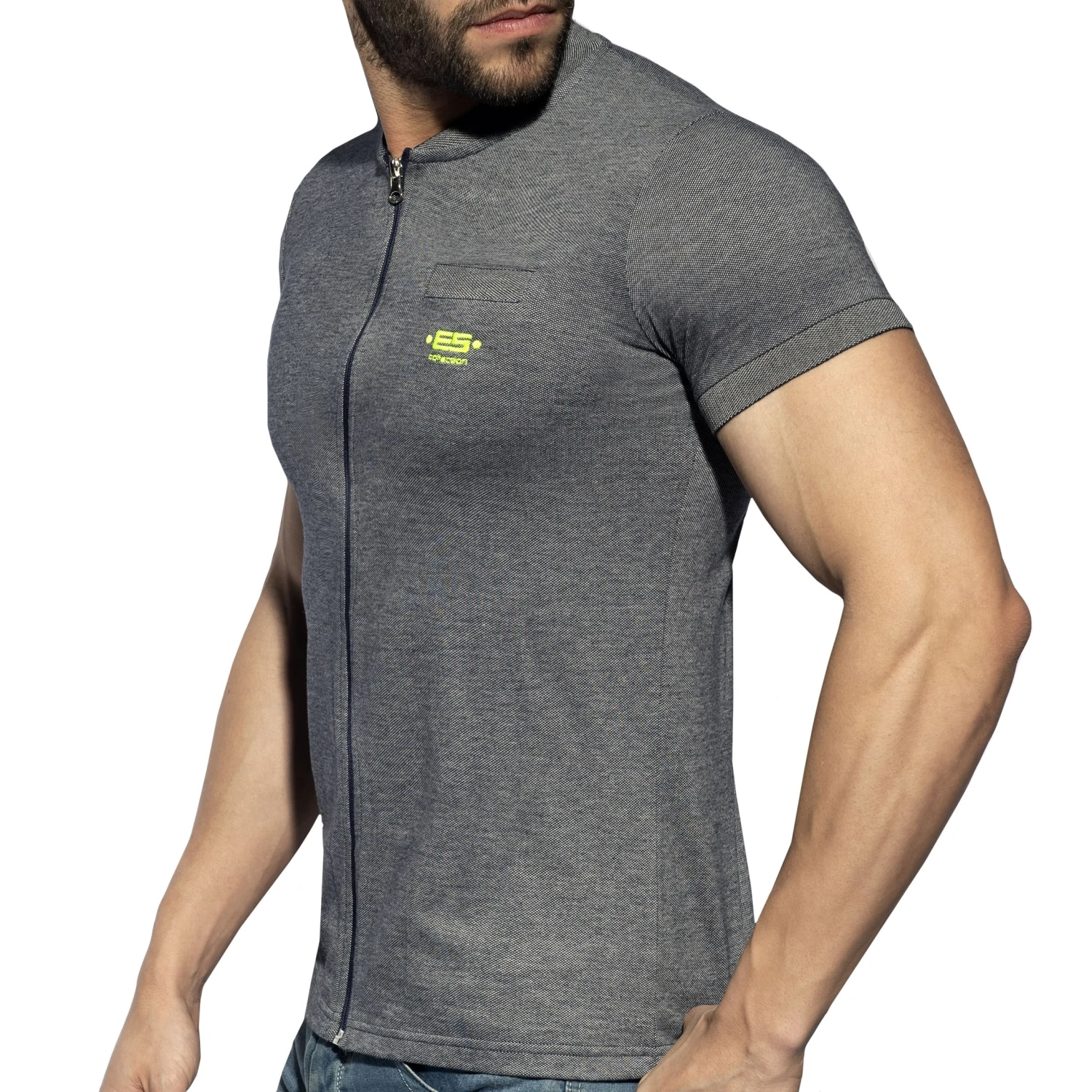 Polo piqué en mélange de coton et de microfibre recyclée. Manches courtes et col rond. Fermeture Eclair intégrale. Poche sur la poitrine brodée du logo ES Collection.