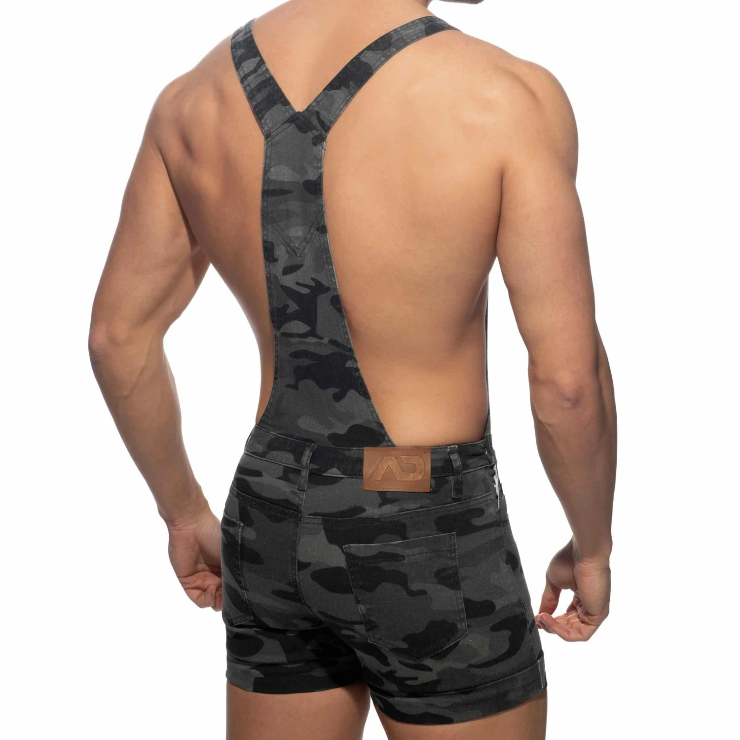 Salopette en jeans stretch imprimĂ© d’un motif camouflage. Poche sur la poitrine. Deux poches latĂ©rales et deux poches arriĂšres. Boutons mĂ©talliques sur les cĂŽtĂ©s. Bretelles ajustables.