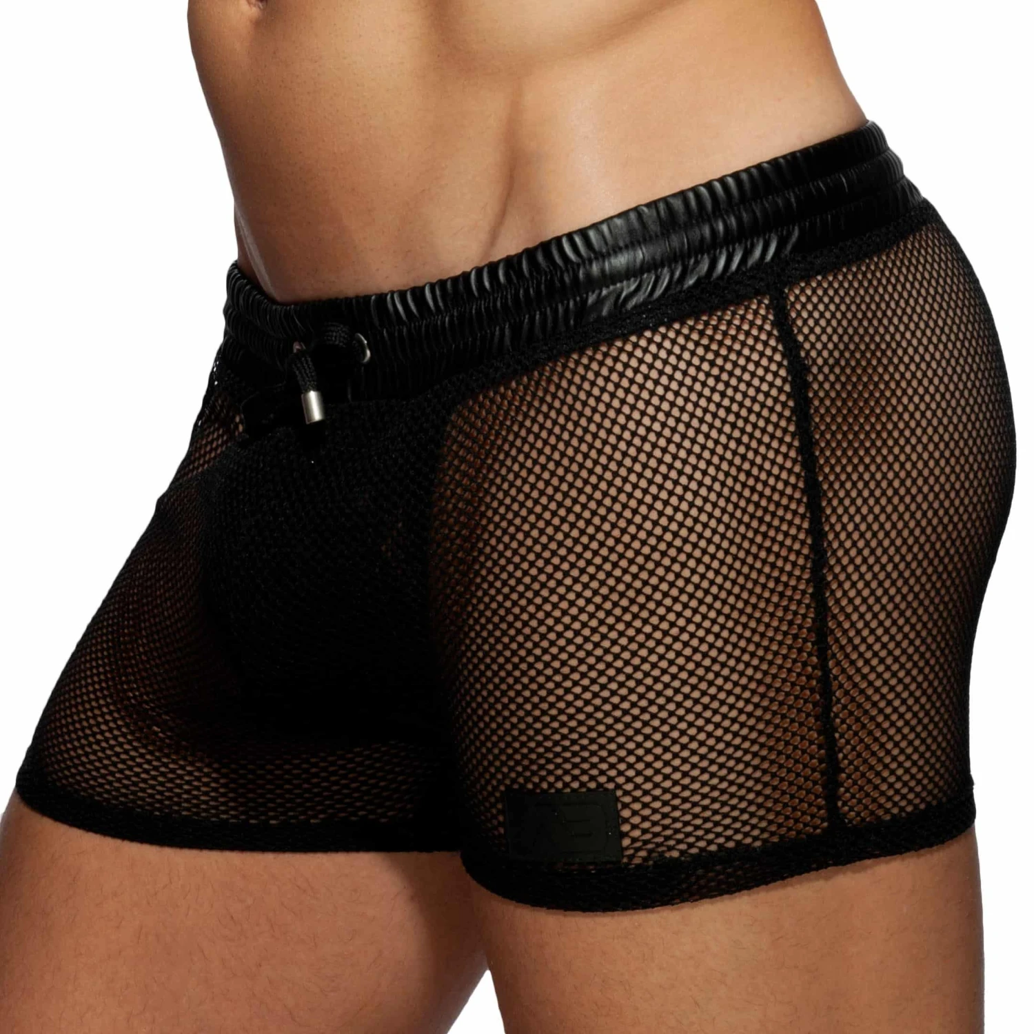 Short trÚs sexy en mesh transparent non doublé de couleur unie. Poche intérieure Kango pour un grand confort frontal. Logo Addicted en silicone sur la cuisse gauche. Ceinture élastique avec cordon de serrage.
