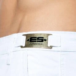 Short stretch en toile de coton de couleur unie. Coupe slim ajustée. 4 poches. Passants de ceinture. Braguette à fermeture Eclair et 1 bouton. Etiquettes ES Collection devant et derriÚre. Taille US.