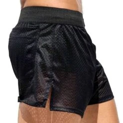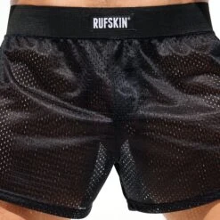 Short lĂ©ger et confortable en maille perforĂ©e extensible, douce et respirante. Parfait pour porter par dessus un short cycliste ou un legging. 2 poches Ă l’arrière. Braguette factice. Large ceinture Ă©lastique avec logo Rufskin.