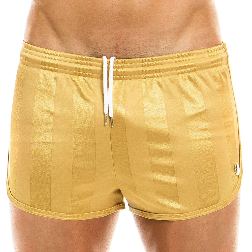 Short taille basse trĂšs sexy en microfibre lisse et brillante. Rayures verticales discrĂštes. Coupe confortable, Ă©chancrĂ©e sur les cĂŽtĂ©s. 1 poche Ă l’arriĂšre. Rivet mĂ©talique sur la jambe gauche. Ceinture Ă©lastique avec cordon de serrage intĂ©rieur.