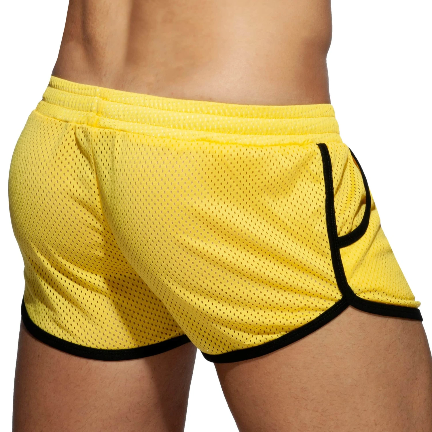 Short sport taille basse en mesh ajouré transparent. Coupe courte, rétro, échancrée sur les cÎtés. Bordures de couleur contrastée. Poche intérieur Kango pour un grand confort frontal. 2 poches. Logo AD Festish en silicone cousu sur la cuisse gauche. Ceinture élastique avec cordon de serrage.