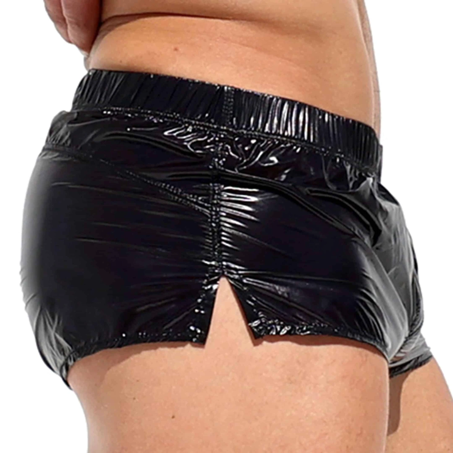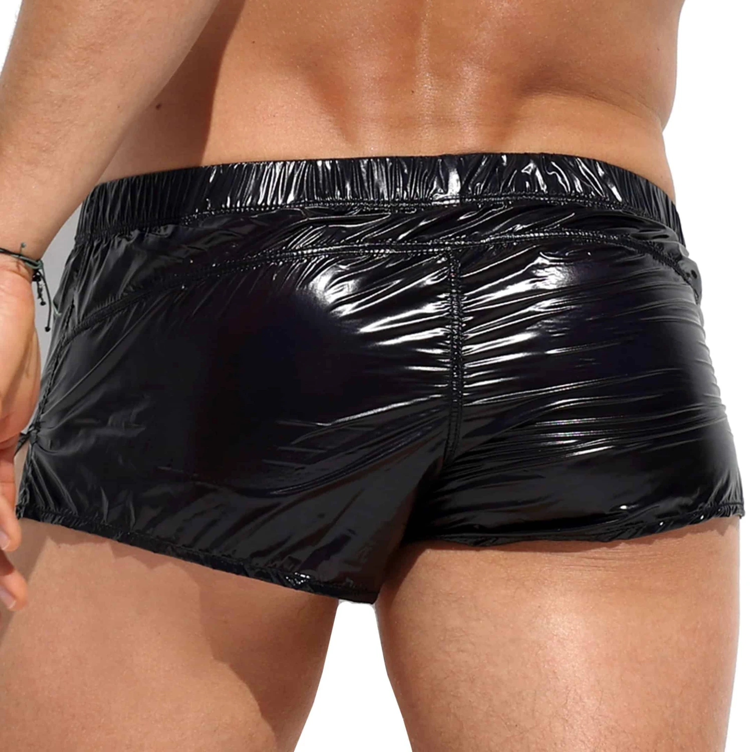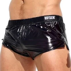 Short trÚs sexy en tissu transparent et ultra léger. A porter par-dessus un maillot de bain ou sans rien dessous ! Coupe courte et échancrée sur le cÎté. Braguette factice. Ceinture élastique recouverte signée Rufskin. Fabriqué en Californie.