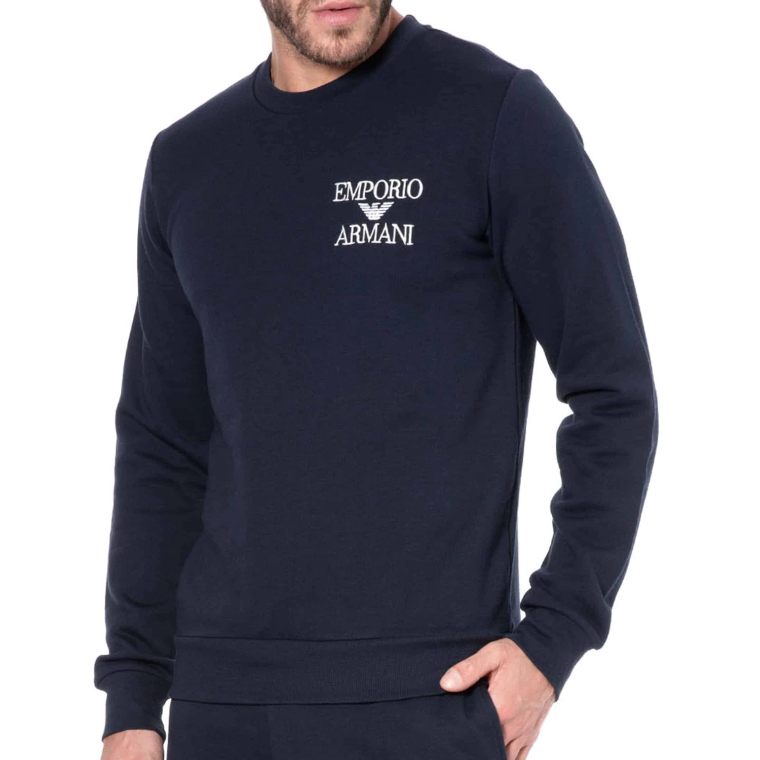 Sweat-shirt en jersey bouclette super doux et confortable. Logo Emporio Armani brodé sur la poitrine. Bandes élastiquées à la taille et aux poignets.