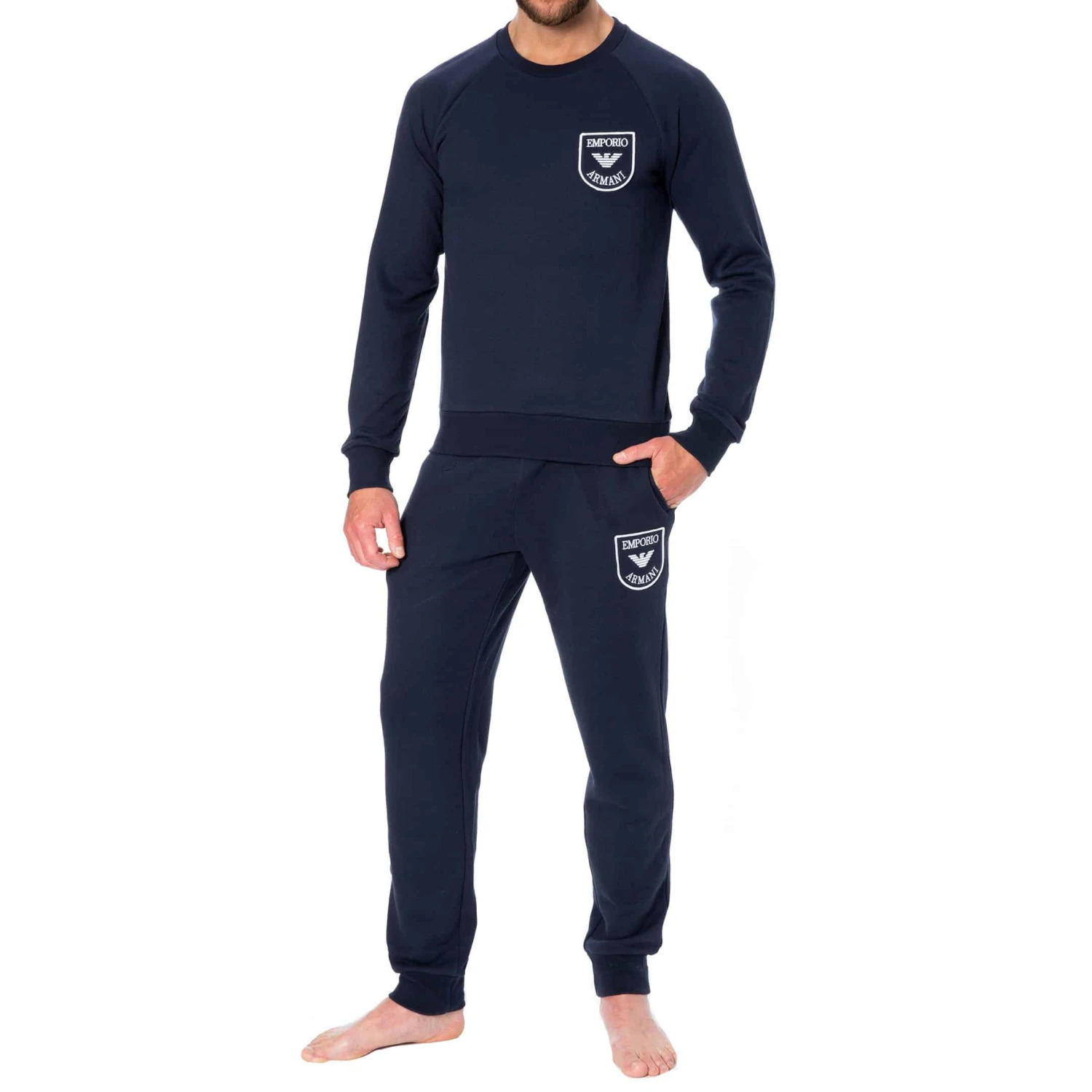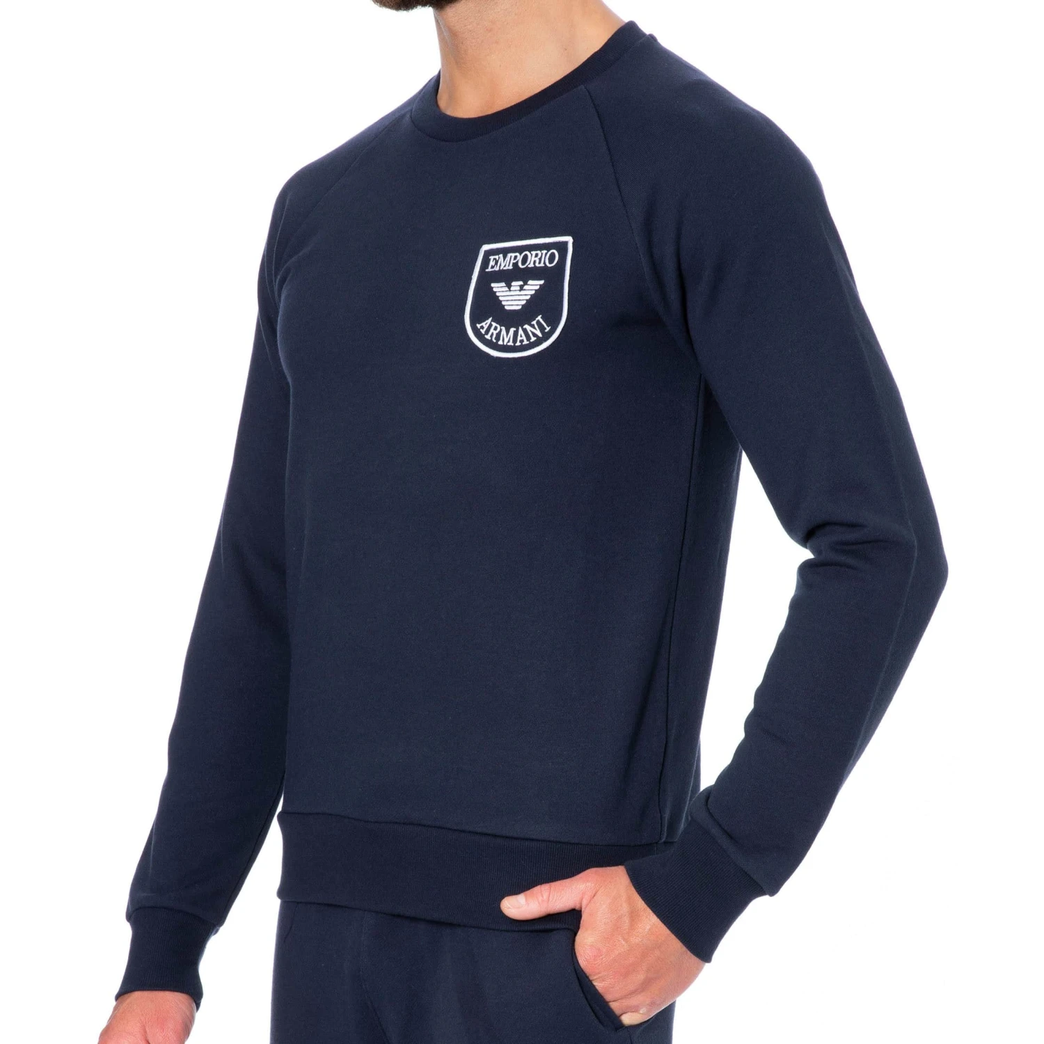 Sweat-shirt en jersey bouclette super doux et confortable. Col rond. Ecusson Emporio Armani brodé sur la poitrine gauche. Bandes élastiquées à la taille et aux poignets. Pantalon vendu séparement.