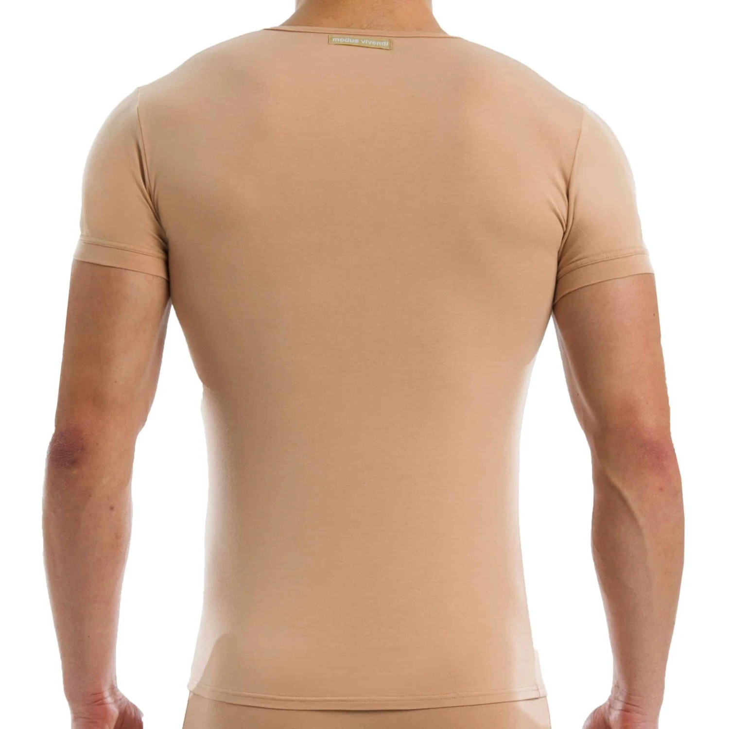 T-shirt uni en coton antibactérien qui réduit les odeurs corporelles et vous aide à rester frais toute la journée. Coupe simple et ajustée. Col rond. Logo Modus Vivendi en haut du dos.