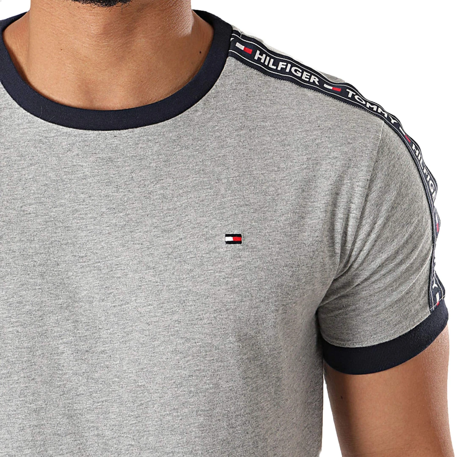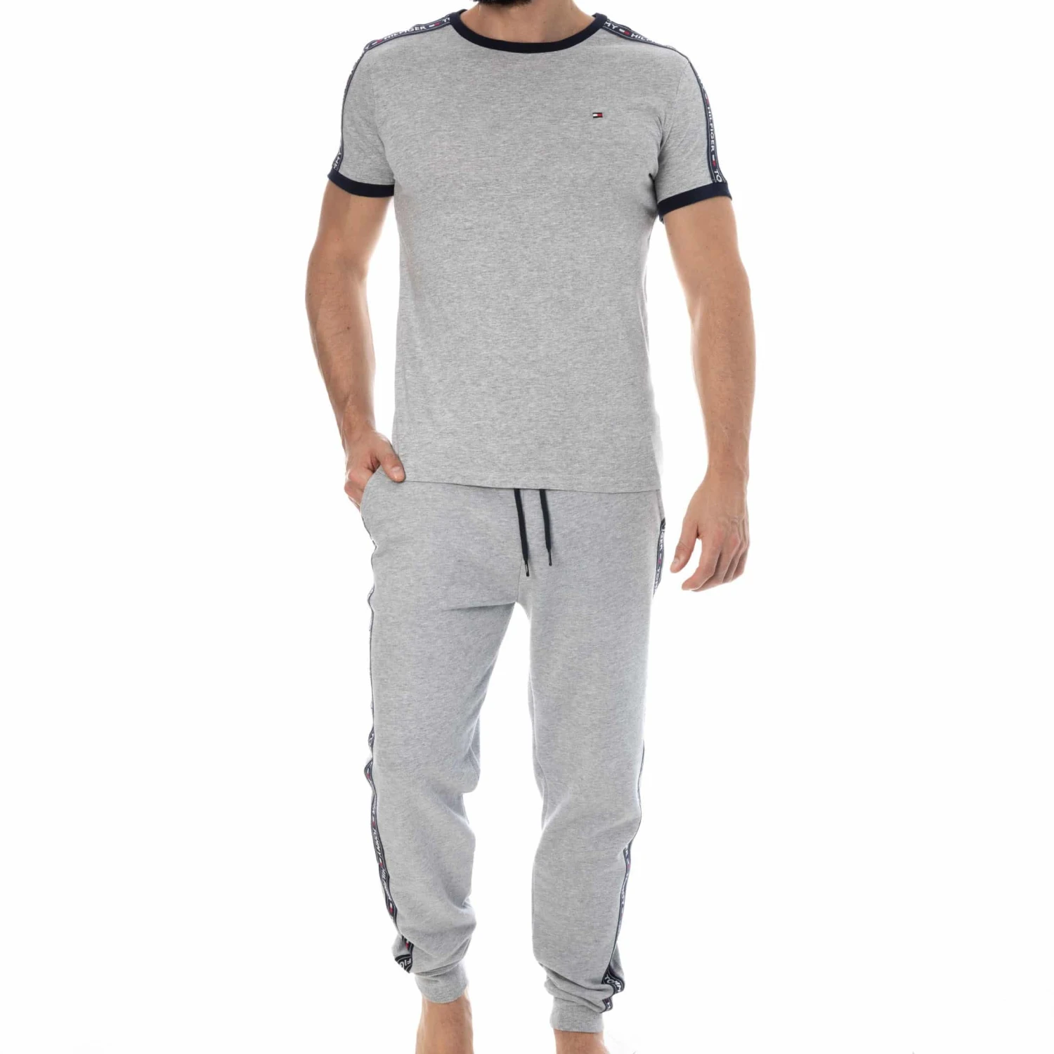 T-Shirt doux et confortable en pur coton. Manches courtes et col rond. Large bande sport signée Tommy Hilfiger le long des épaules. Drapeau emblématique de la marque sur la poitrine. Pantalon vendu séparément.