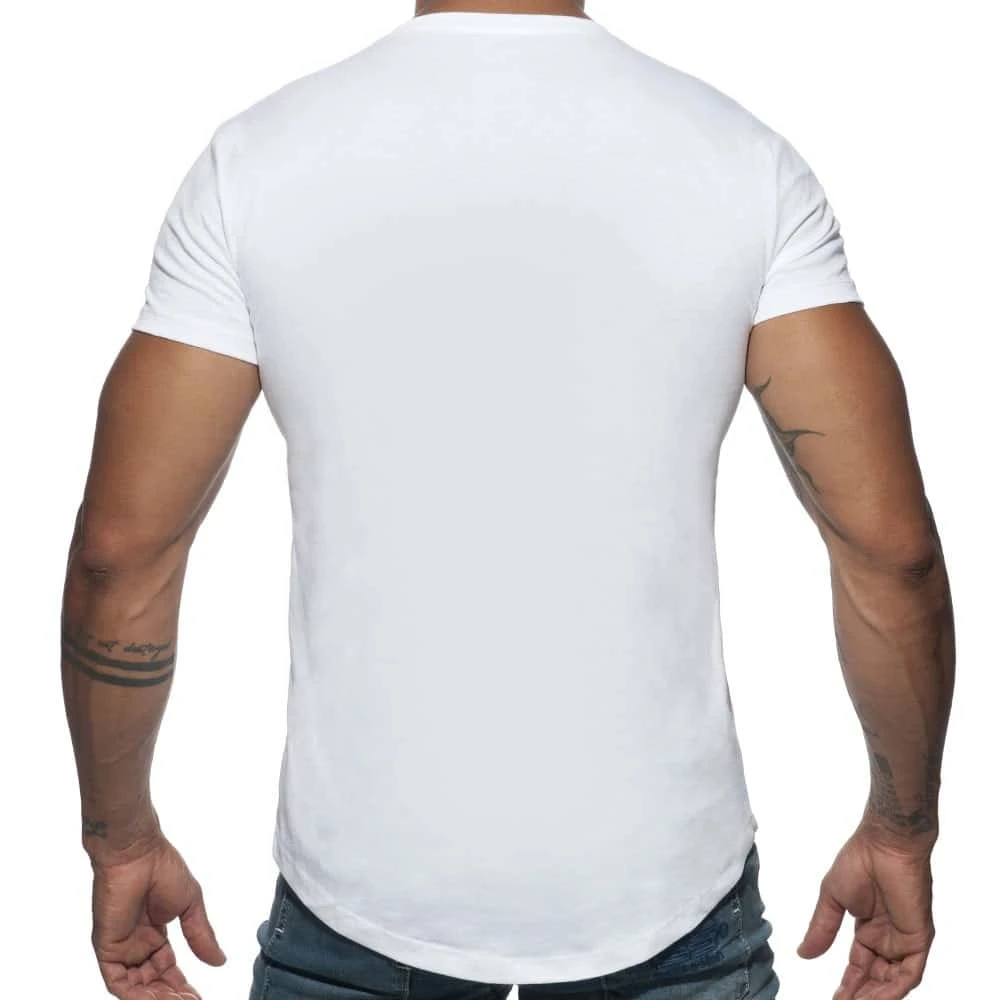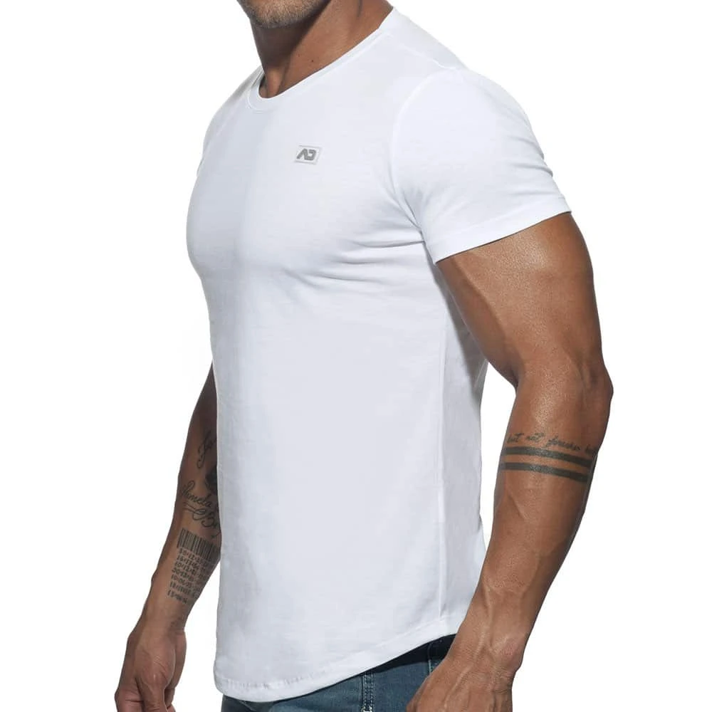 T-shirt à col rond en pur coton doux et confortable. Coupe simple, ajustée et incurvée sur sa partie inférieure. Manches courtes. Logo AD en silicone sur la poitrine. Fabriqué à Barcelone.