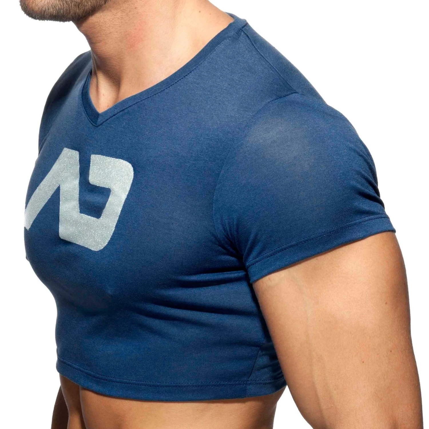 T-shirt sport et sexy, dont la coupe ajustée a été raccourcie pour dévoiler vos abdos. En mélange trÚs doux et léger à base de viscose. Manches courtes et col en V. Gros logo AD de couleur argentée sur la poitrine.