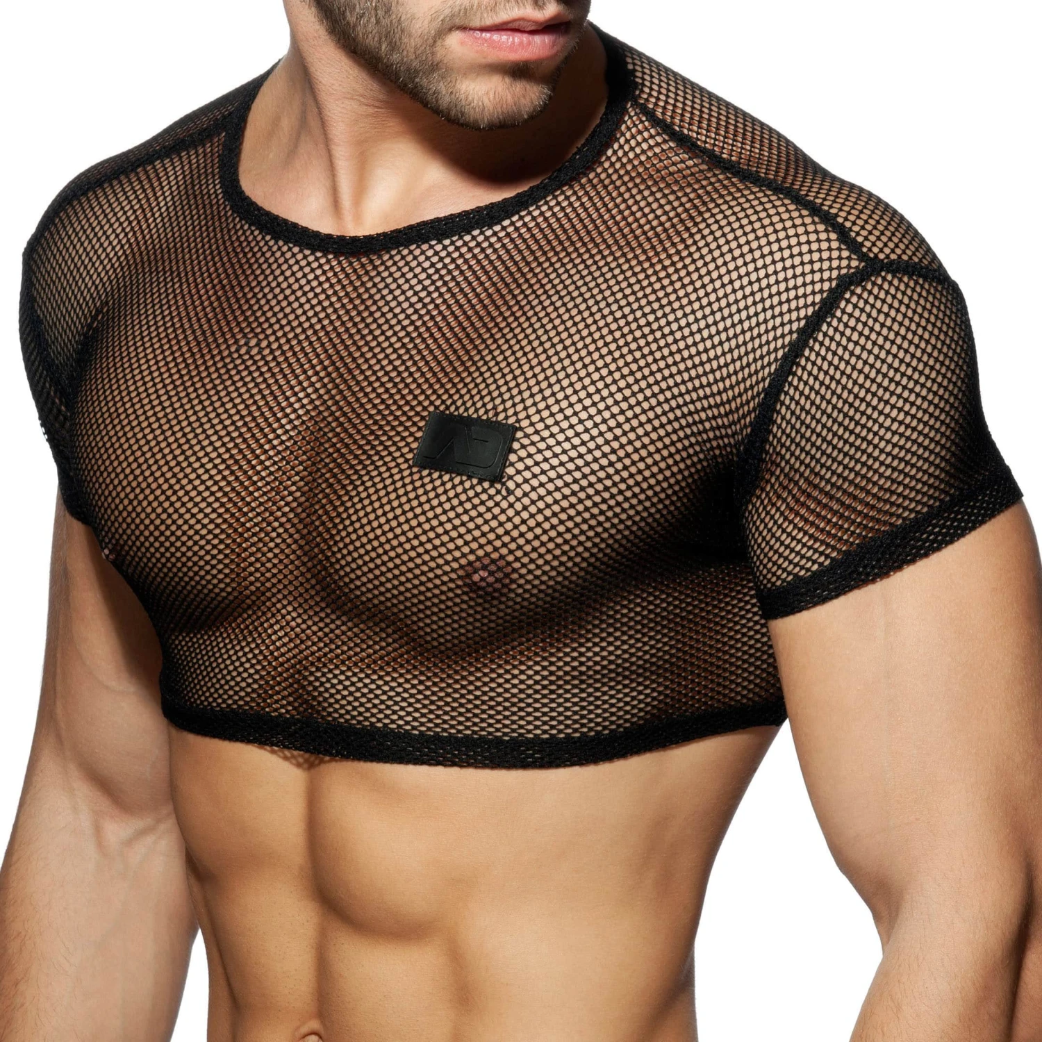 T-shirt trÚs sexy en mesh transparent non doublé de couleur unie. Sa coupe trÚs ajustée a été raccourcie pour dévoiler vos abdos. Logo Addicted en silicone sur la poitrine.
