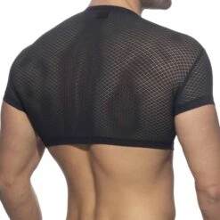 T-shirt sexy en matiĂšre semi-transparente dĂ©corĂ© d’un motif gĂ©omĂ©trique. Coupe trĂšs ajustĂ©e et raccourcie pour dĂ©voiler vos abdos. Logo Addicted en silicone en haut du dos.