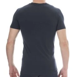 T-shirt en coton bio extensible, trÚs doux et confortable. Manches courtes et col rond. Grand logo Emporio Armani de couleur contrastée au milieu de la poitrine.