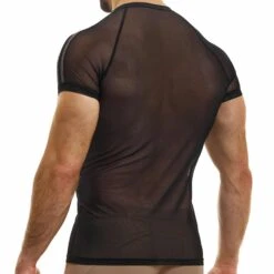 T-shirt luxueux et audacieux en mousseline extensible transparente. Doubles rubans décoratifs sertis de cristaux sur les épaules. Logo MV brillant en relief sur la poitrine. Col rond et manches courtes Raglan.