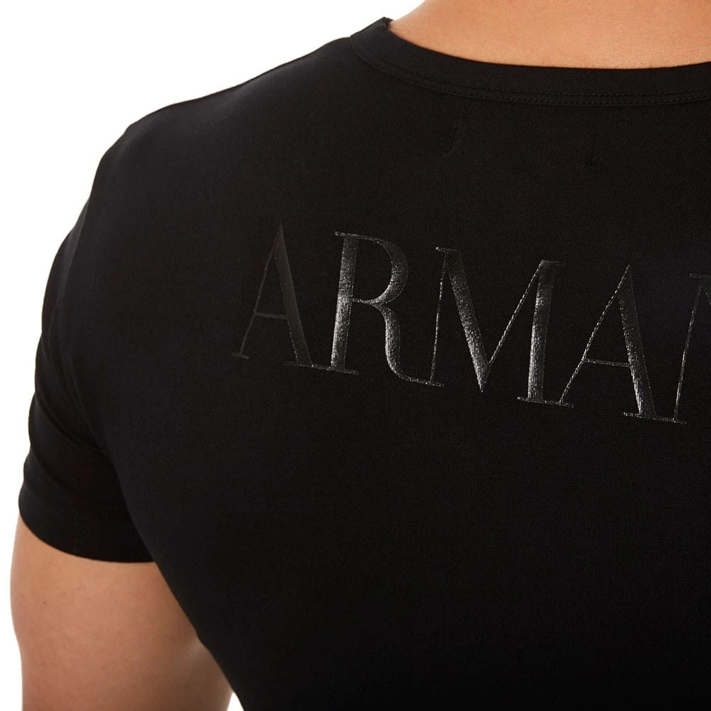 T-Shirt en coton extensible très doux et confortable. Coupe ajustée et élégante. Manches courtes et col en V. Grand logo Emporio Armani en silicone sur la poitrine et dans le dos.