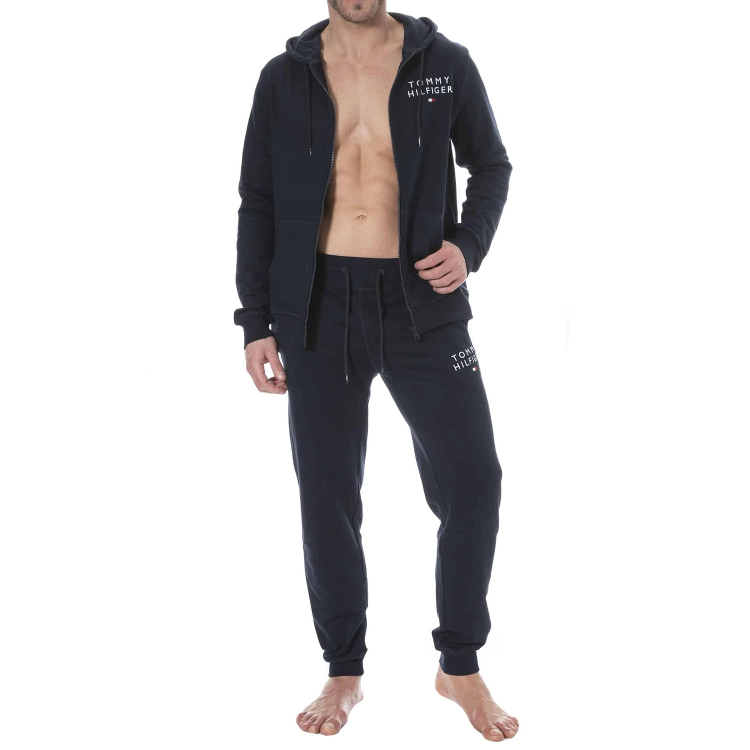 Veste à capuche douce et confortable en mélange de coton issu de la Better Cotton Initiative et de polyester recyclé. 2 poches devant. Fermeture Eclair. Capuche avec cordon de serrage. Logo Tommy Hilfiger brodé sur la poitrine. Pantalon vendu séparément.